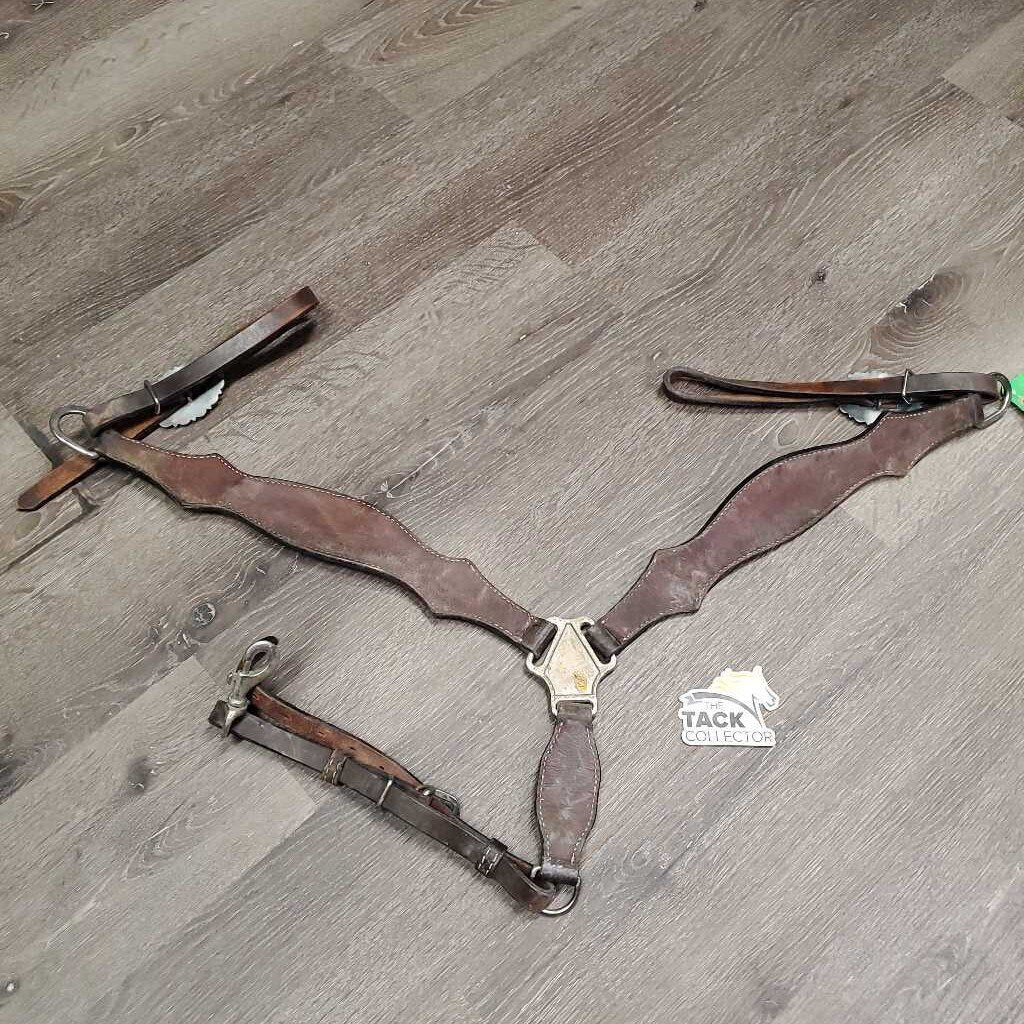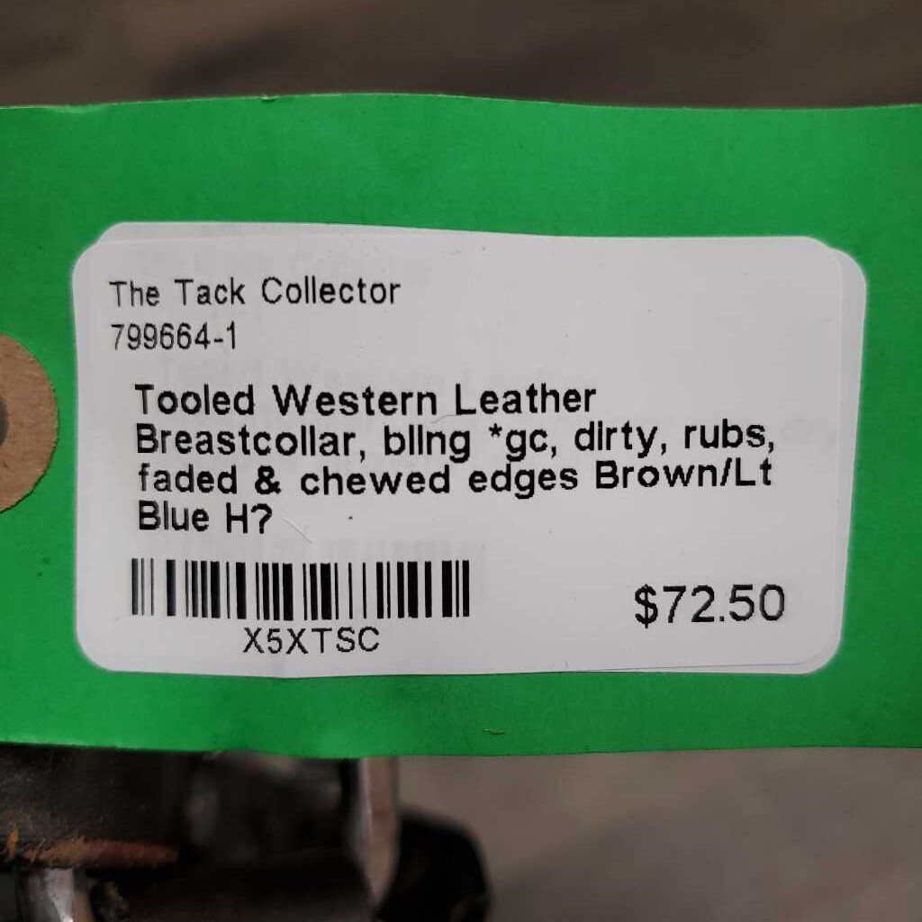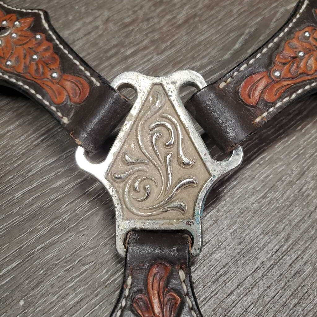 Tooled Western Leather Breastcollar, bling *gc, dirty, rubs, faded & chewed edges