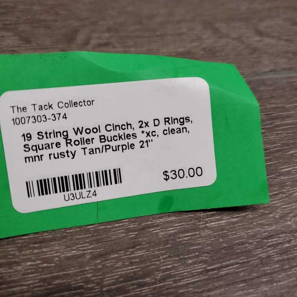 19 String Wool Cinch, 2x D Rings, Square Roller Buckles *xc, clean, mnr rusty