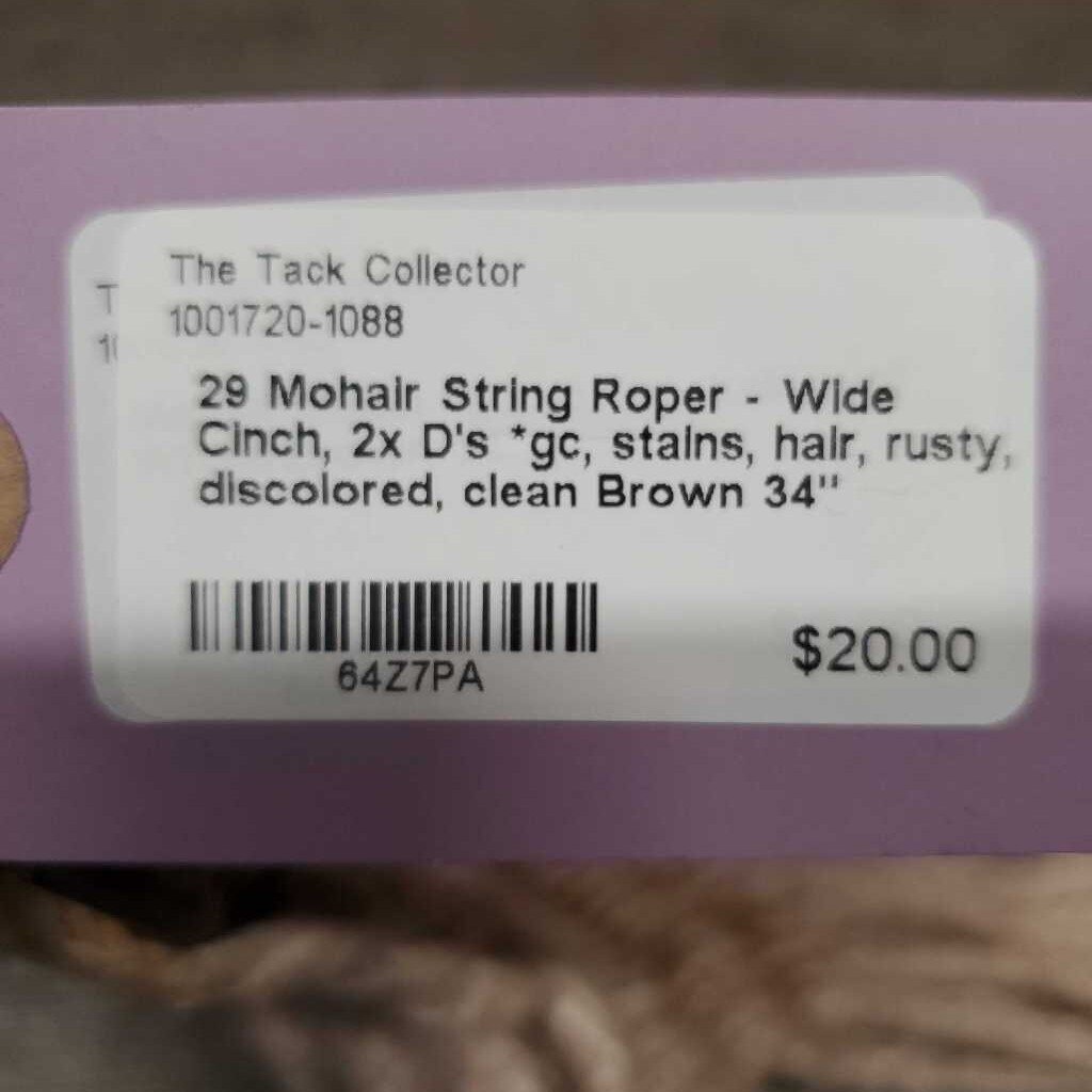 29 Mohair String Roper - Wide Cinch, 2x D's *gc, stains, hair, rusty, discolored, clean
