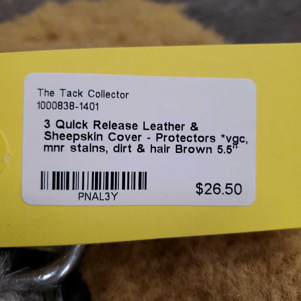 3 Quick Release Leather & Sheepskin Cover - Protectors *vgc, mnr stains, dirt & hair