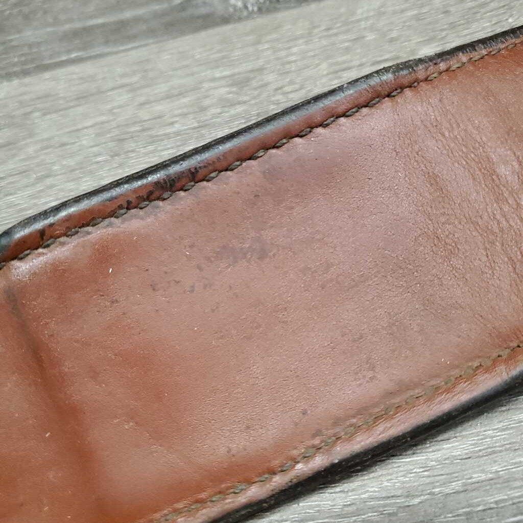 3" W Soft Thick Leather Back Cinch, connector Buckle, Keepers *vgc, dents, scrapes, curled edge, mnr dirt