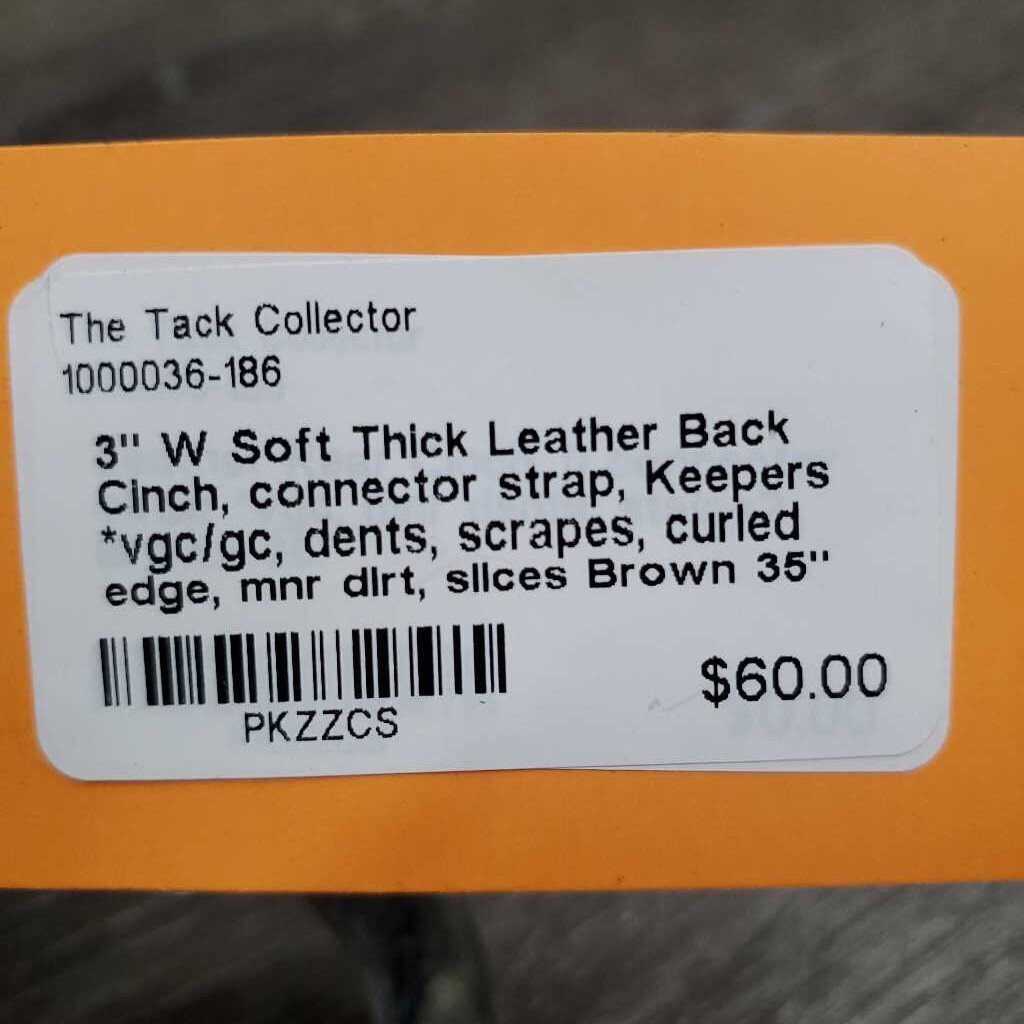 3" W Soft Thick Leather Back Cinch, connector strap, Keepers *vgc/gc, dents, scrapes, curled edge, mnr dirt, slices