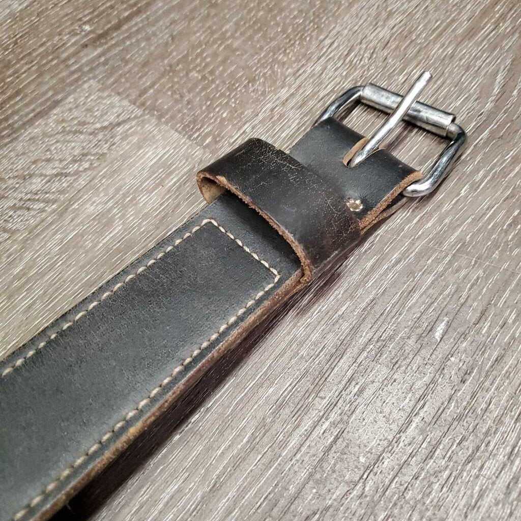 Flat Doube Leather Back Cinch, center strap, brass snap *vgc/xc, mnr film & dirty?residue, edge scrapes