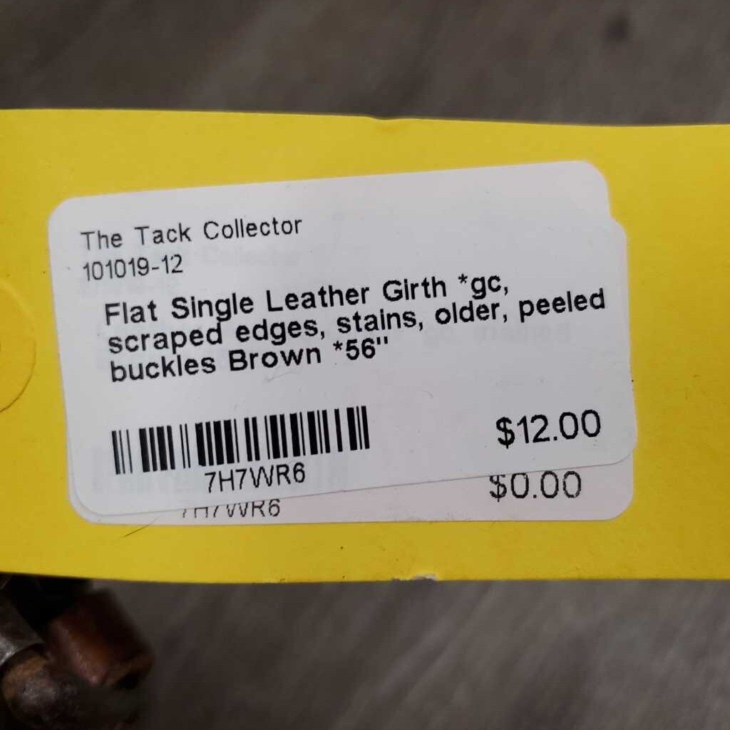 Flat Single Leather Girth *gc, scraped edges, stains, older, peeled buckles