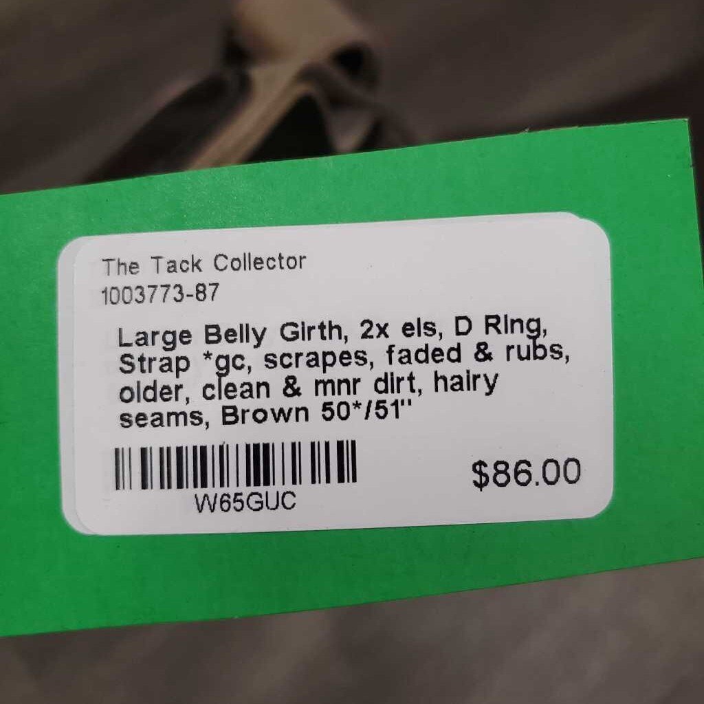 Large Belly Girth, 2x els, D Ring, Strap *gc, scrapes, faded & rubs, older, clean & mnr dirt, hairy seams