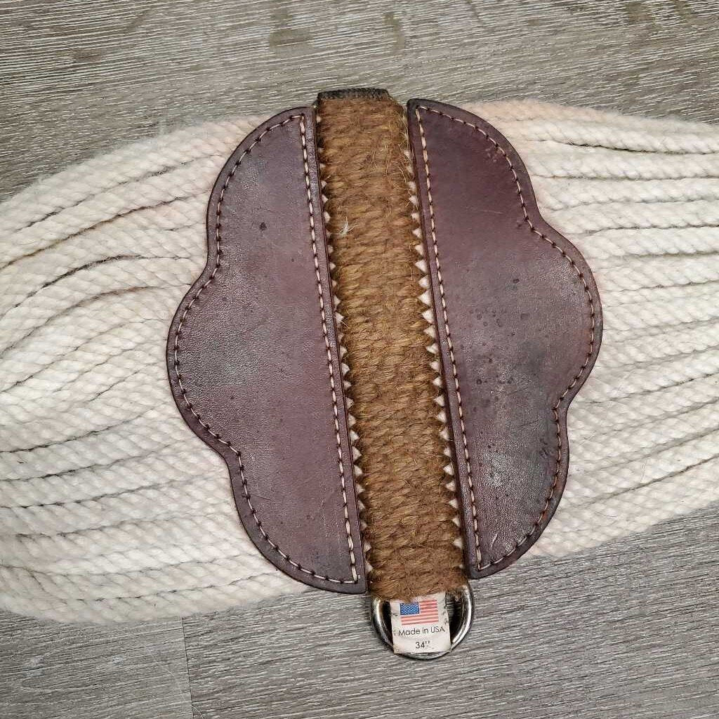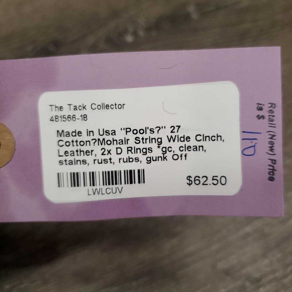 "Pool's?" 27 Cotton?Mohair String Wide Cinch, Leather, 2x D Rings *gc, clean, stains, rust, rubs, gunk