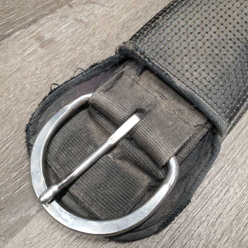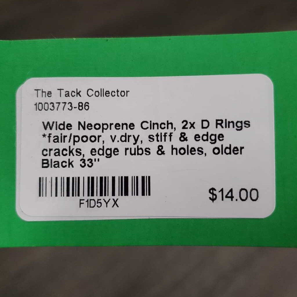 Wide Neoprene Cinch, 2x D Rings *fair/poor, v.dry, stiff & edge cracks, edge rubs & holes, older