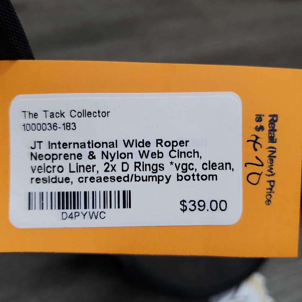 Wide Roper Neoprene & Nylon Web Cinch, velcro Liner, 2x D Rings *vgc, clean, residue, creaesed/bumpy bottom