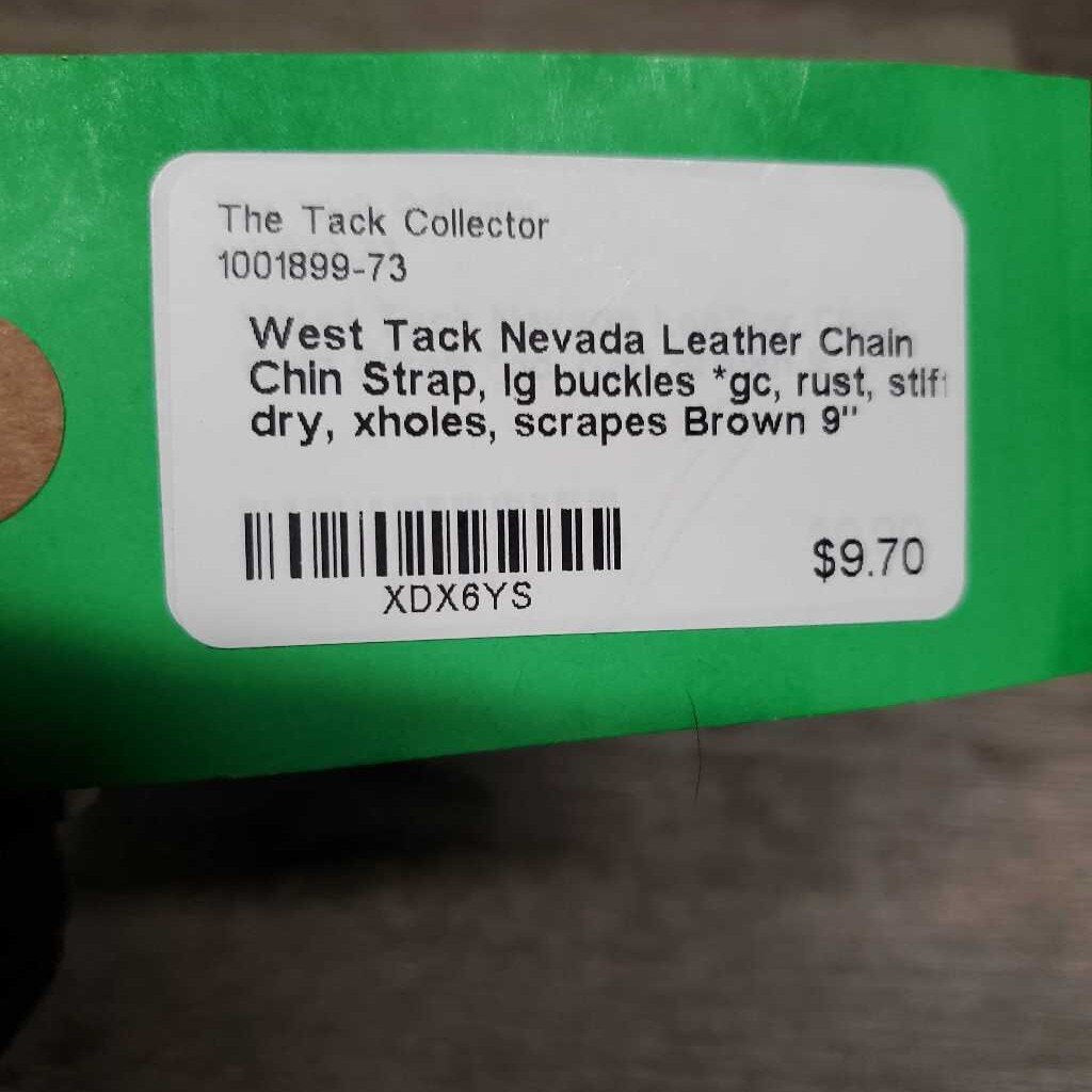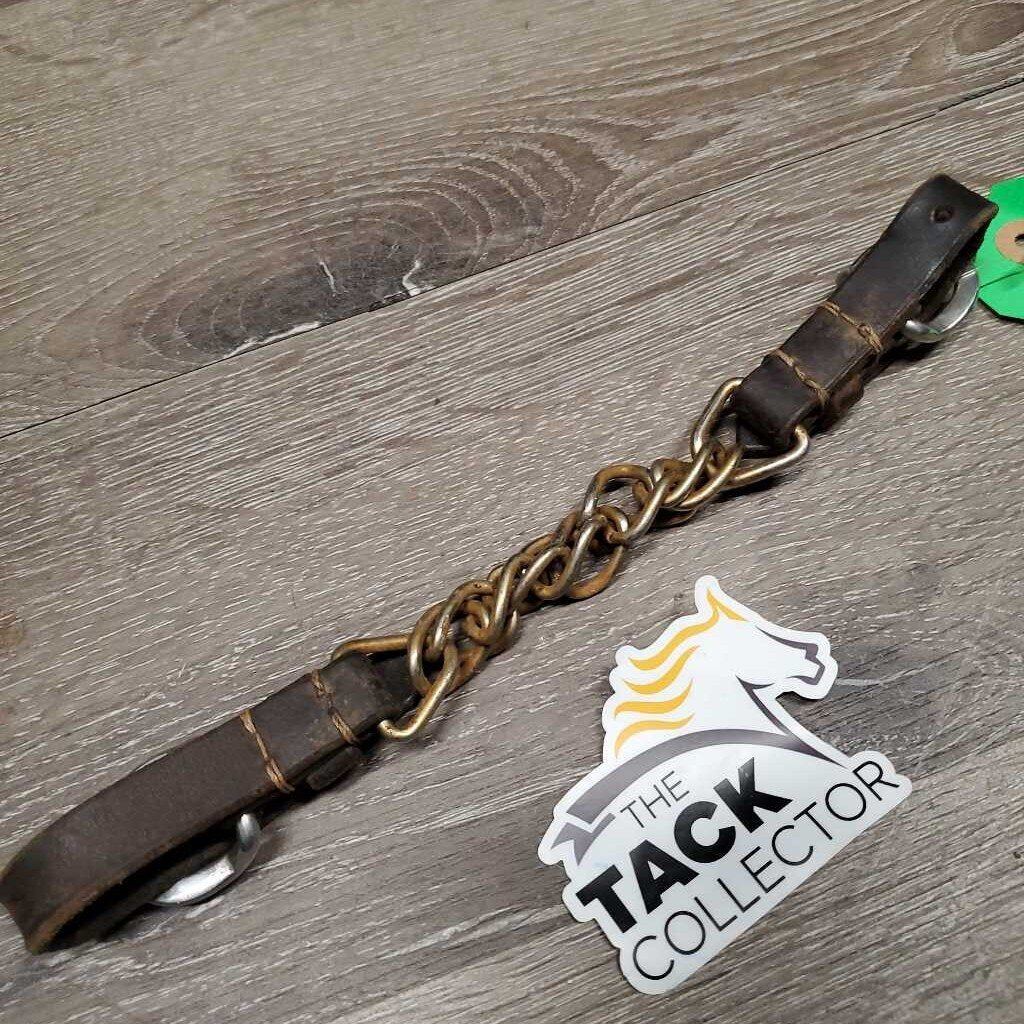 Leather Chain Chin Strap, lg buckles *gc, rust, stiff, dry, xholes, scrapes