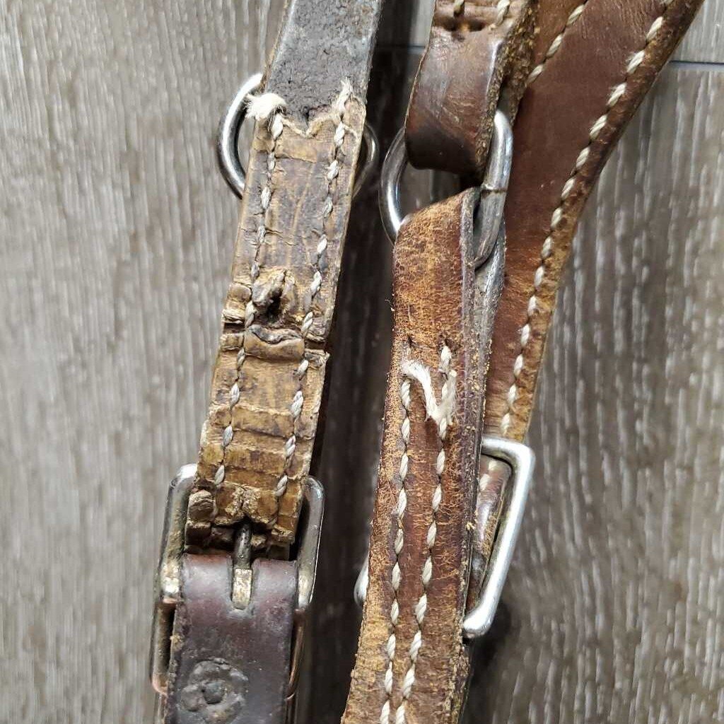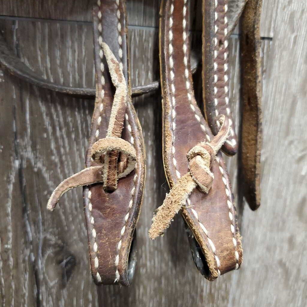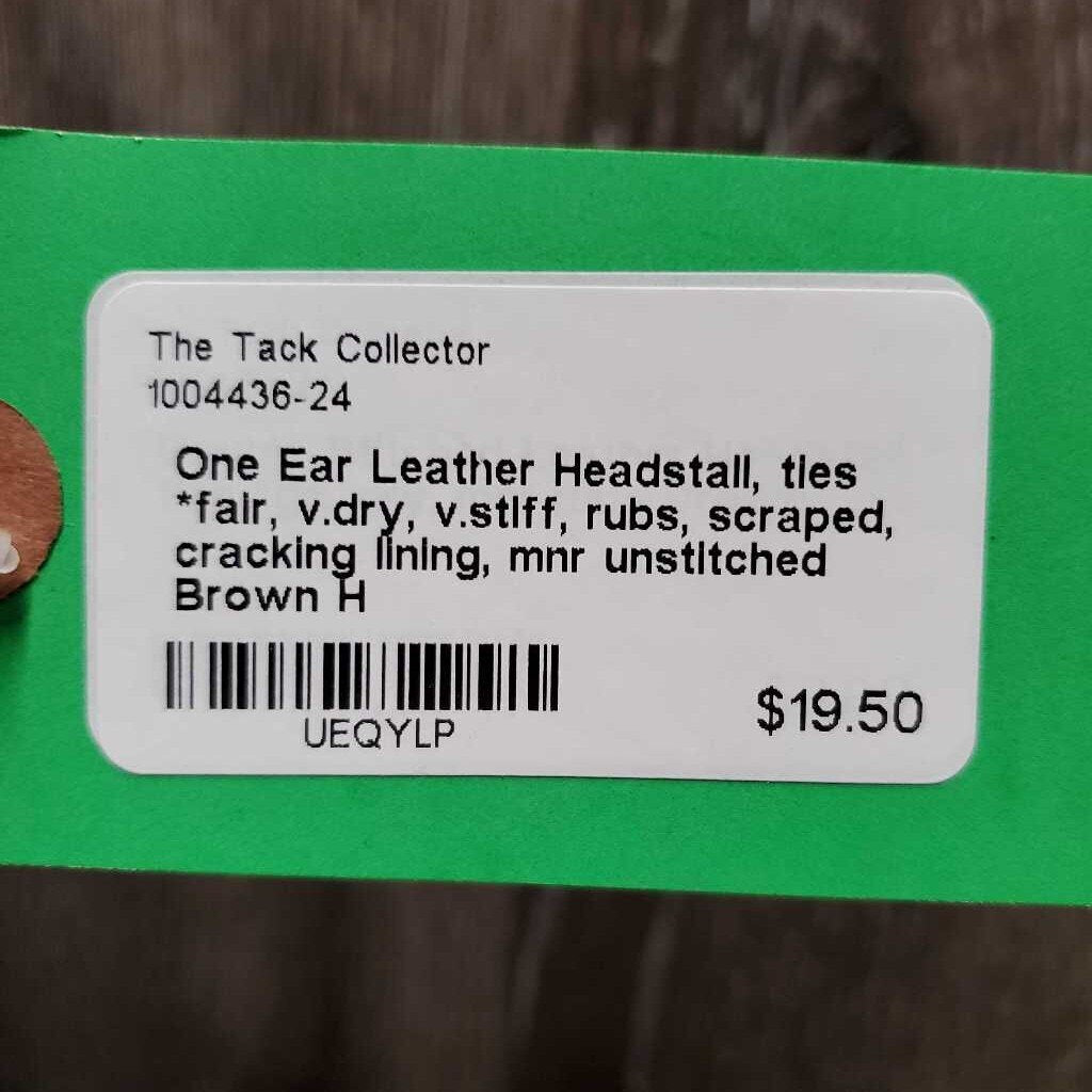One Ear Leather Headstall, ties *fair, v.dry, v.stiff, rubs, scraped, cracking lining, mnr unstitched