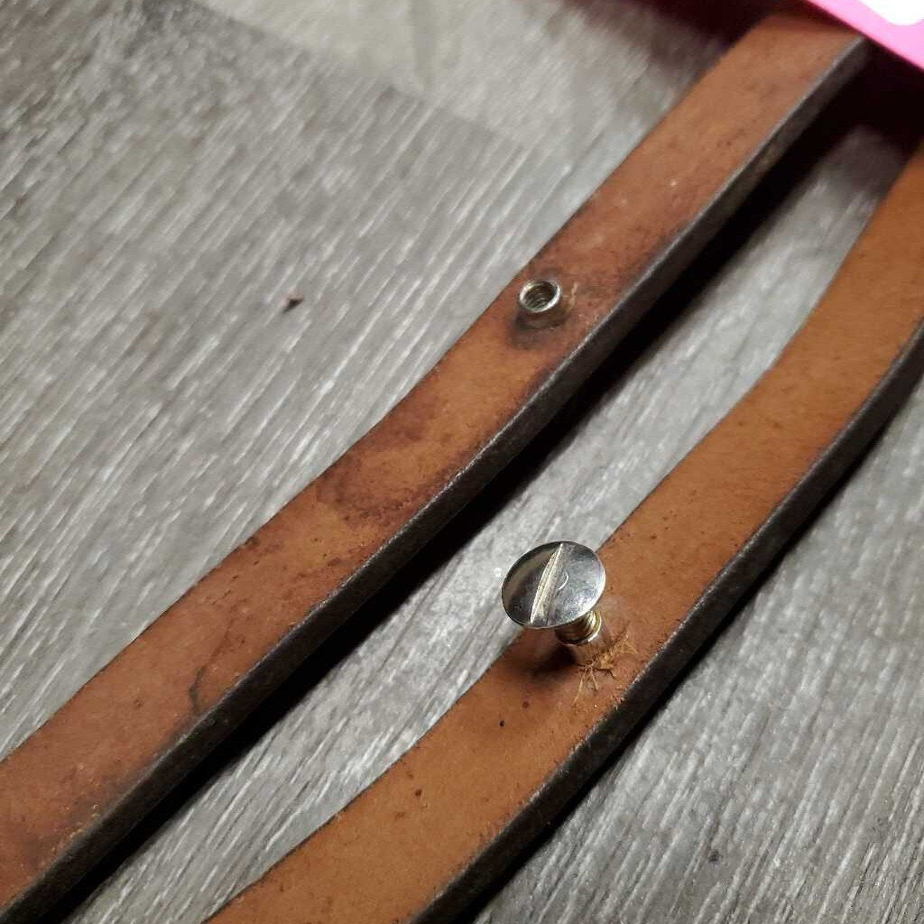 Pr Narrow Light Split Reins, 2 screws *missing 1 screw back, gc, 1 Rein: v.dirty, v.stiff, v.stained & dry *broken end