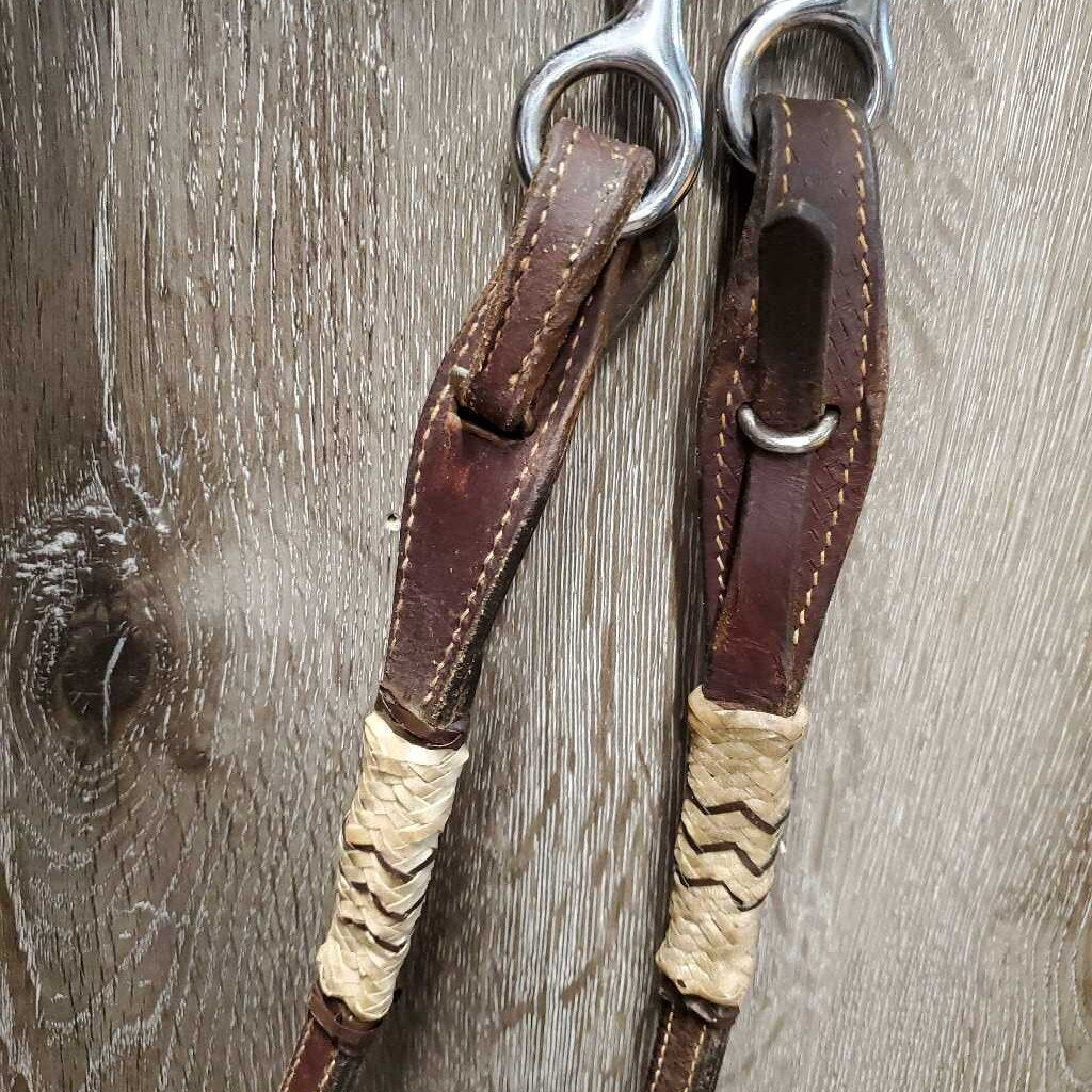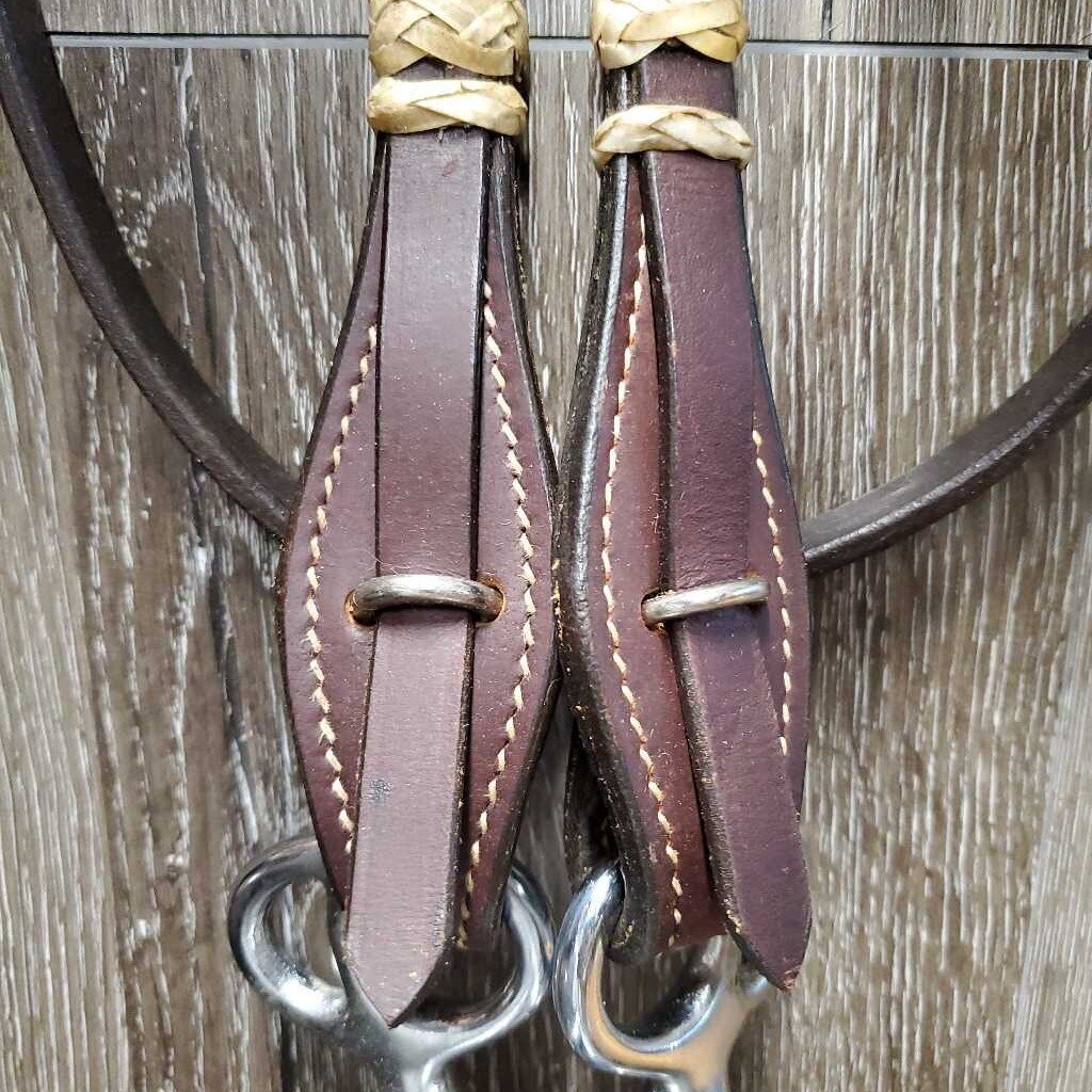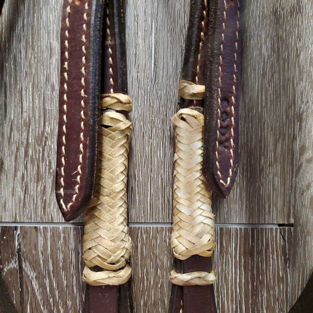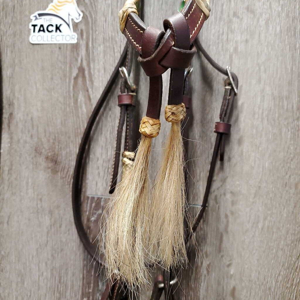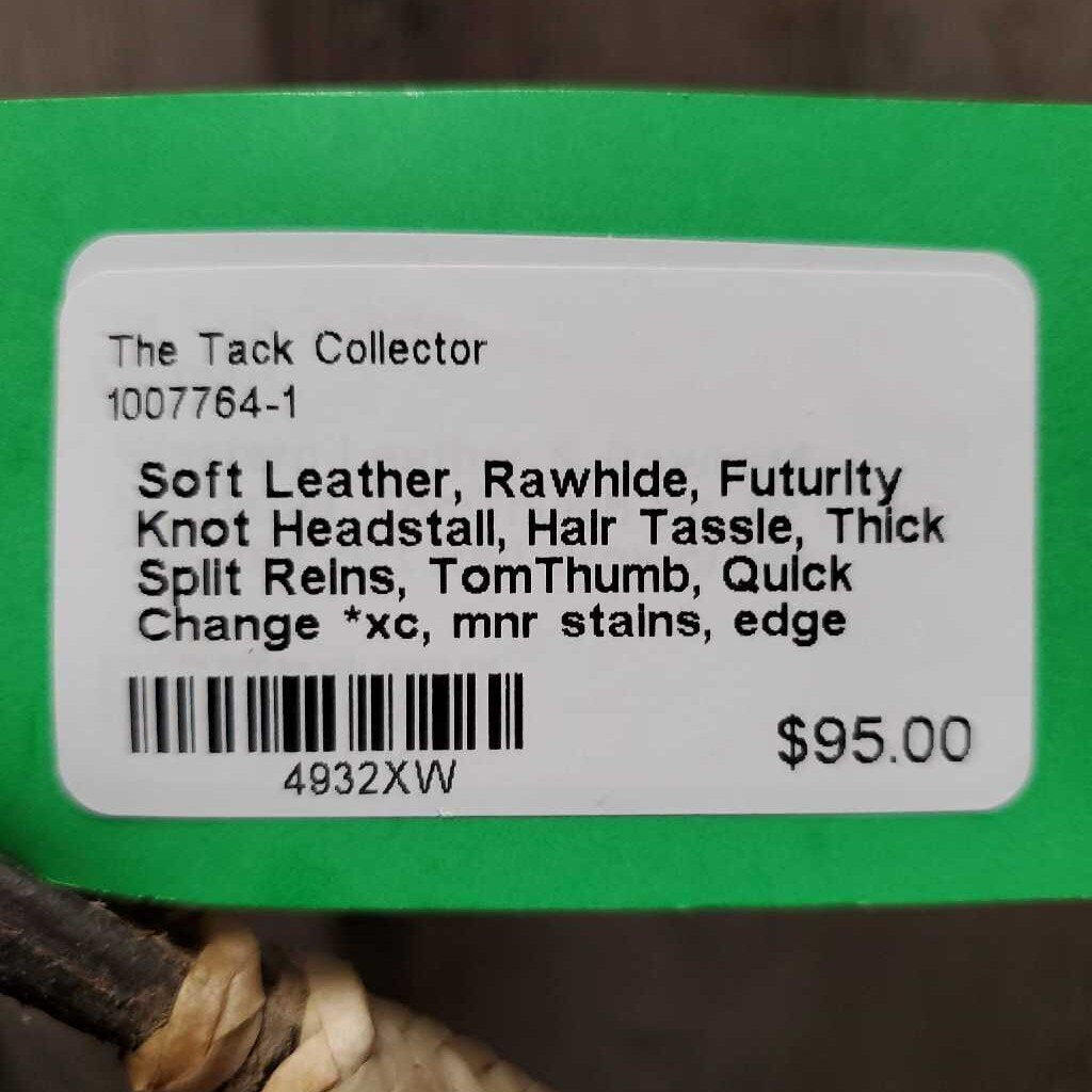 Soft Leather, Rawhide, Futurity Knot Headstall, Hair Tassle, Thick Split Reins, TomThumb, Quick Change *xc, mnr stains, edge scrapes, film & loose/undone laces, shedding tassles