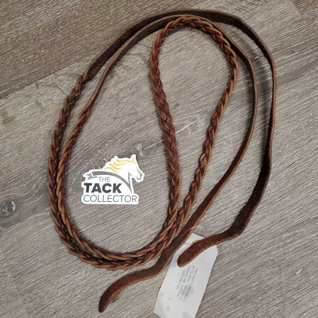 Thin Braided Leather Barrel Reins *vgc, 0 buckles/strings, snaps, mnr residue, dry, scrapes