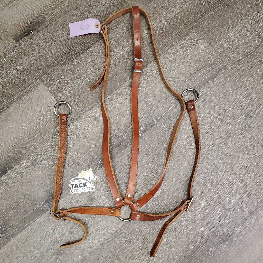 Flat Leather Western Adjustable Running Martingale *vgc/gc, mismatched colors, curled ends, mnr stains, xholes, clean, creases