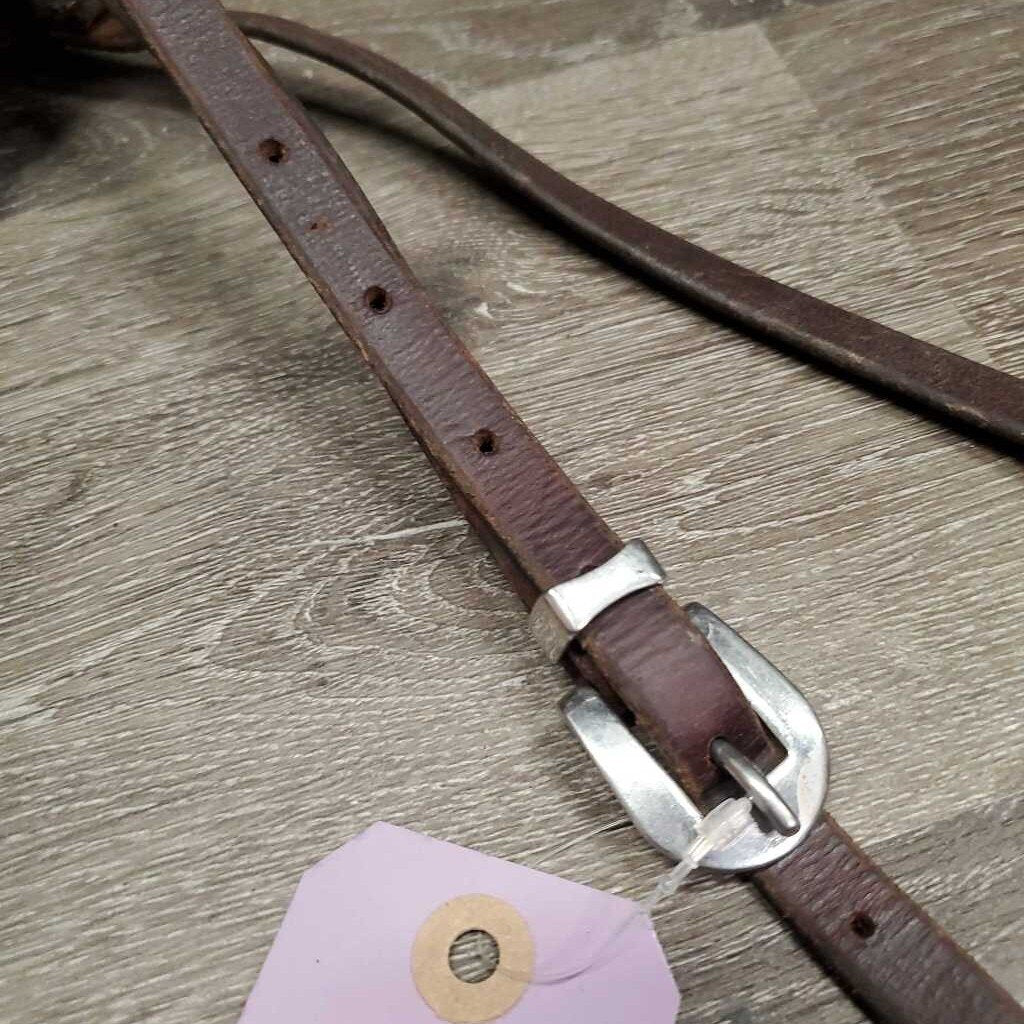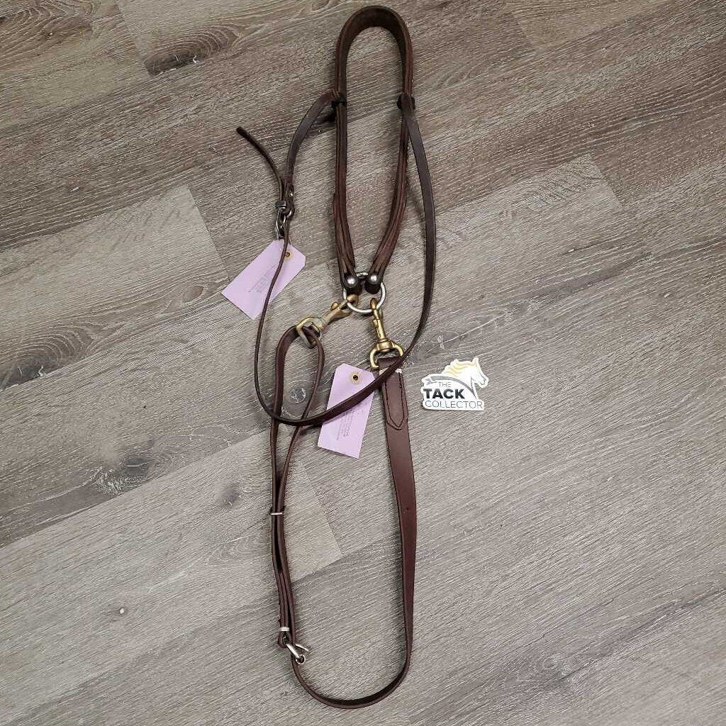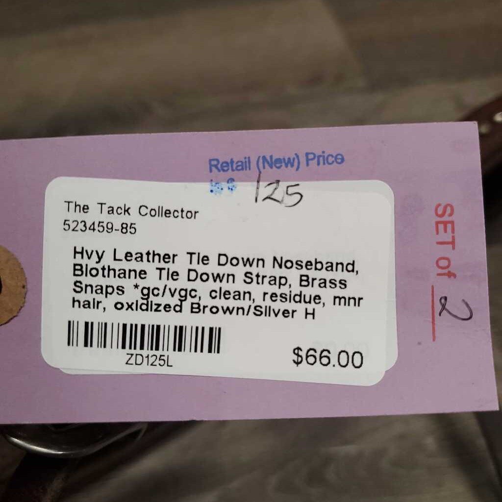 Hvy Leather Tie Down Noseband, Biothane Tie Down Strap, Brass Snaps *gc/vgc, clean, residue, mnr hair, oxidized