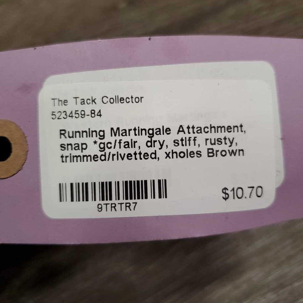 Running Martingale Attachment, snap *gc/fair, dry, stiff, rusty, trimmed/rivetted, xholes