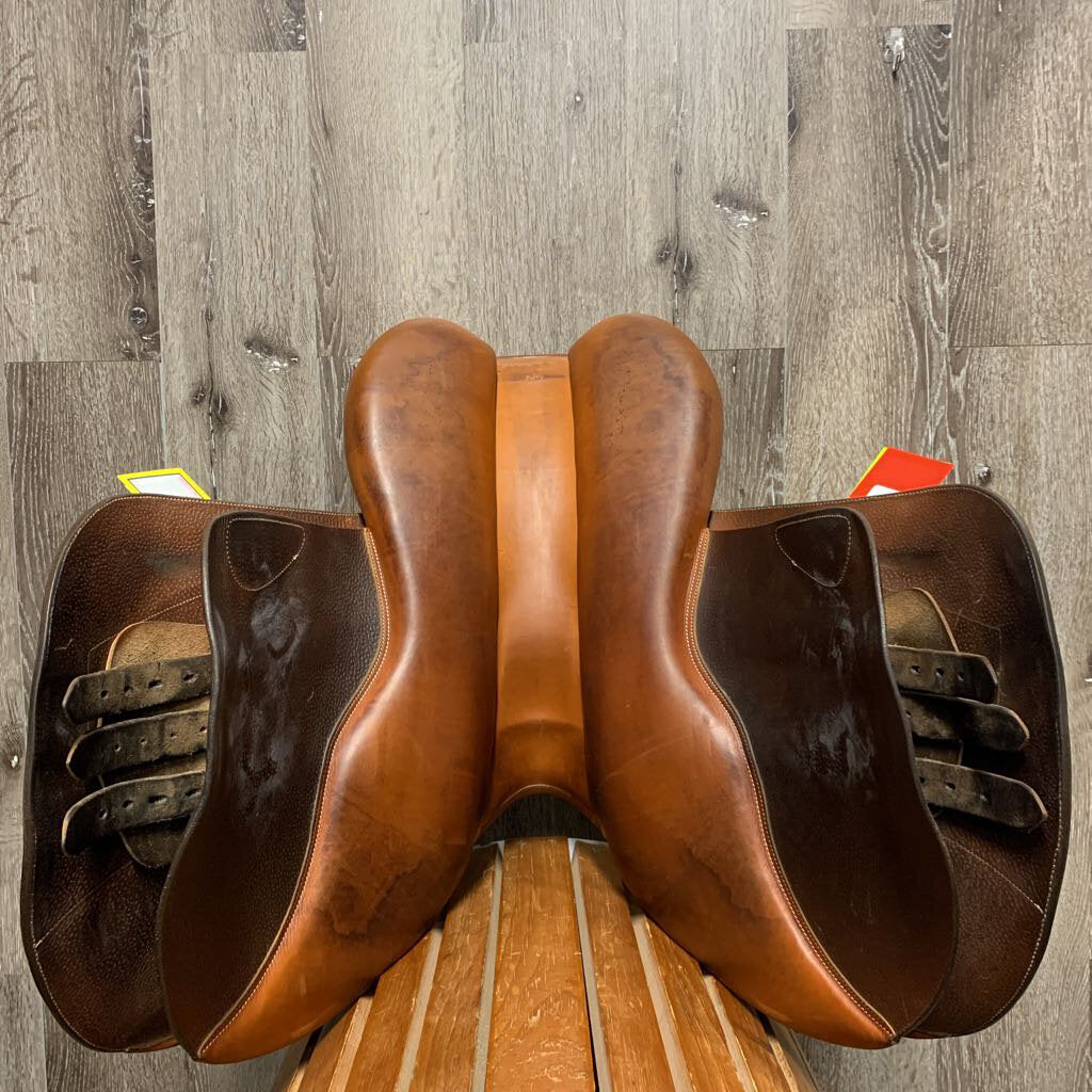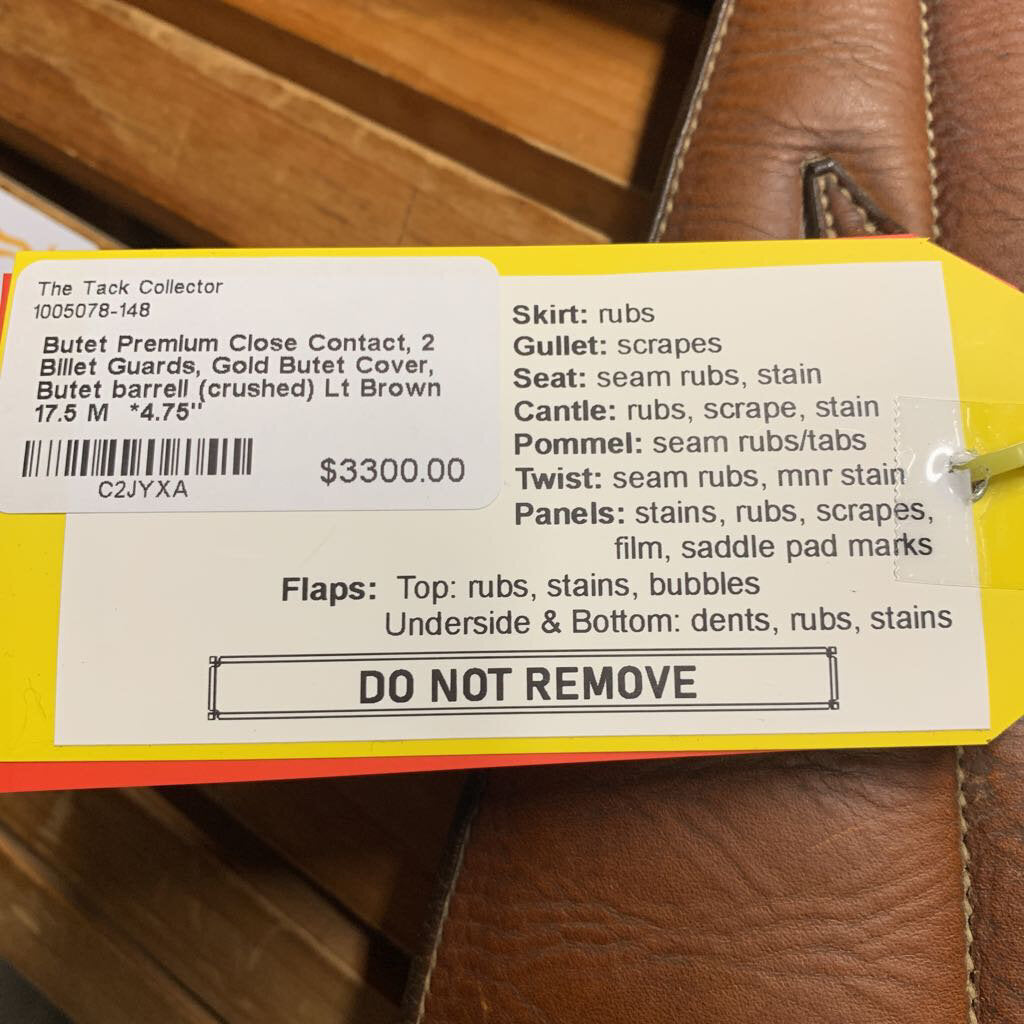VGC wear described as: Pommel: seam rubs/tabs Twist: seam rubs, mnr stain Seat: seam rubs, stain Cantle: rubs, scrape, stain Skirt: rubs Flaps: Top: rubs, stains, bubbles Underside & Bottom: dents, rubs, stains Panels: stains, rubs, scrapes, film, saddle pad marks Gullet:scrapes
