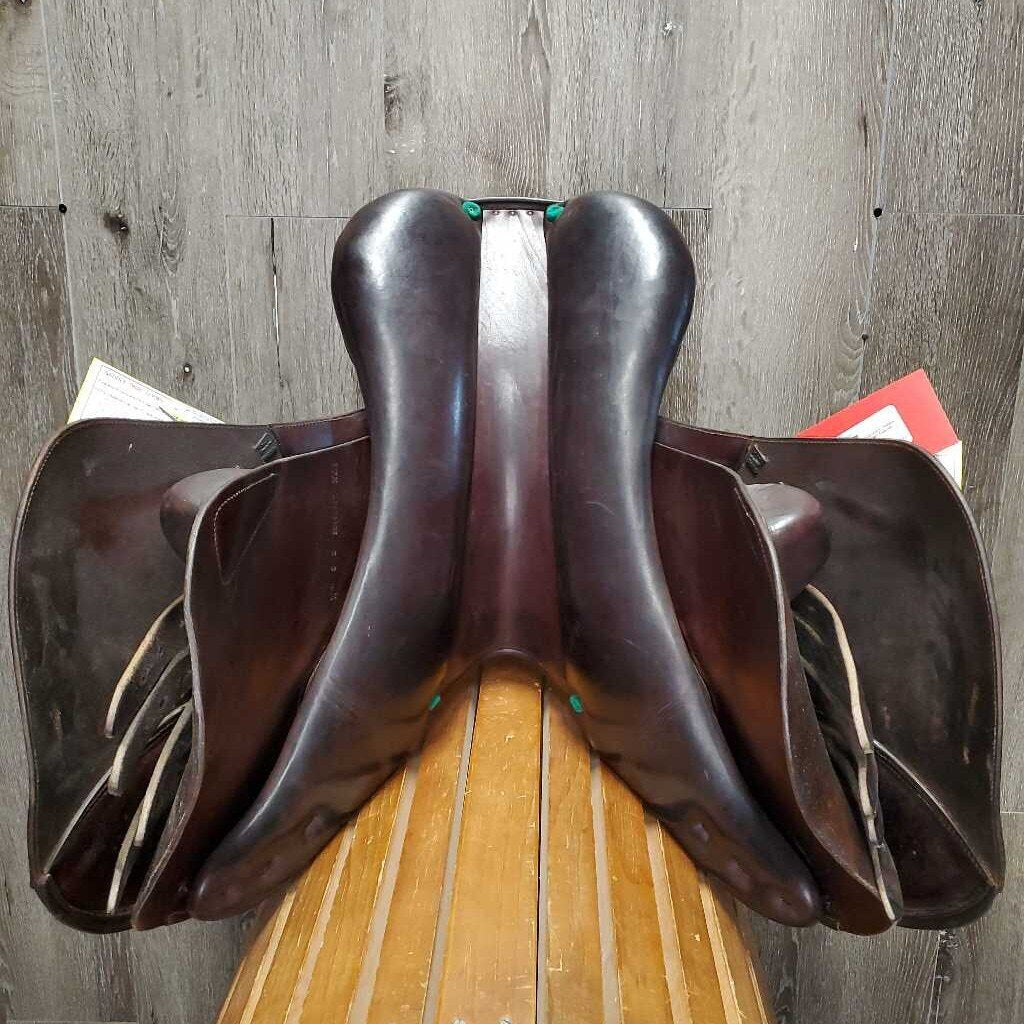 VGC *mnr wear described as: Pommel: mnr rubs Twist: mnr seam rubs & scratches Cantle: mnr dings Skirt: mnr scratches Flaps: Top: mnr rubs, scuffs Underside & Bottom: dents, rubs Panels: mnr rubs, scratches & creases