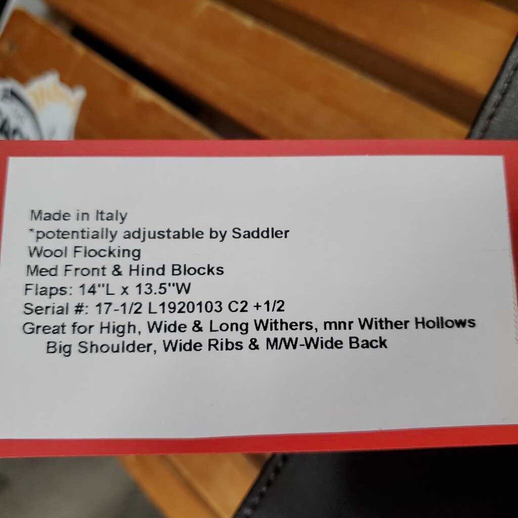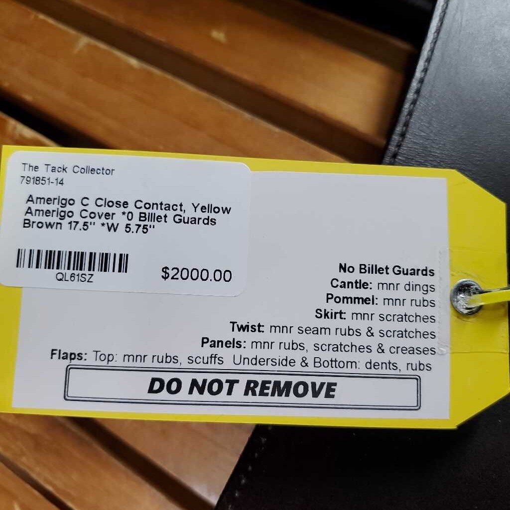 17.5" *W 5.75" Amerigo C Close Contact, Yellow Amerigo Cover, Wool Flocking, Med Front & Hind Blocks, Flaps: 14"L x 13.5"W Serial #: 17-1/2 L1920103 C2 +1/2
