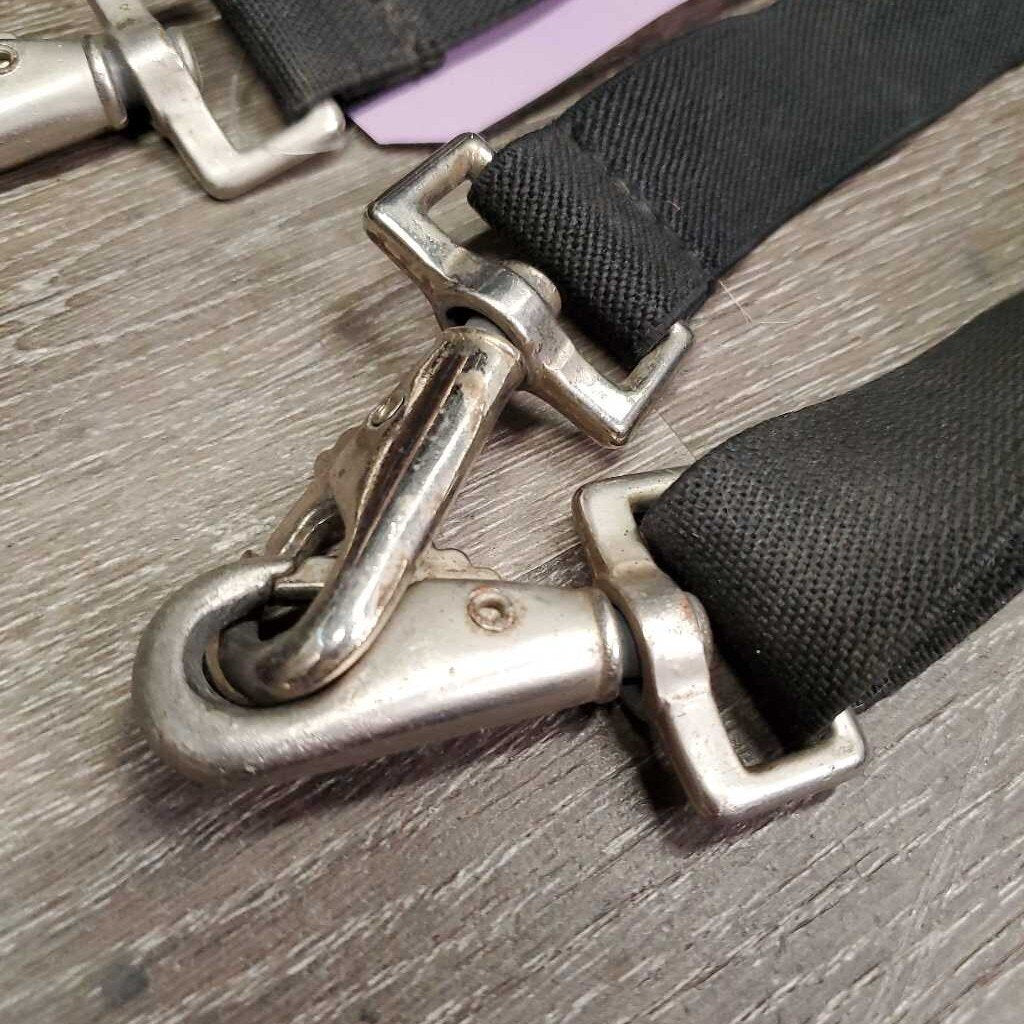 2 Elastic Leg Straps, snaps *gc, mnr rust & dirty?stains, faded, stretched