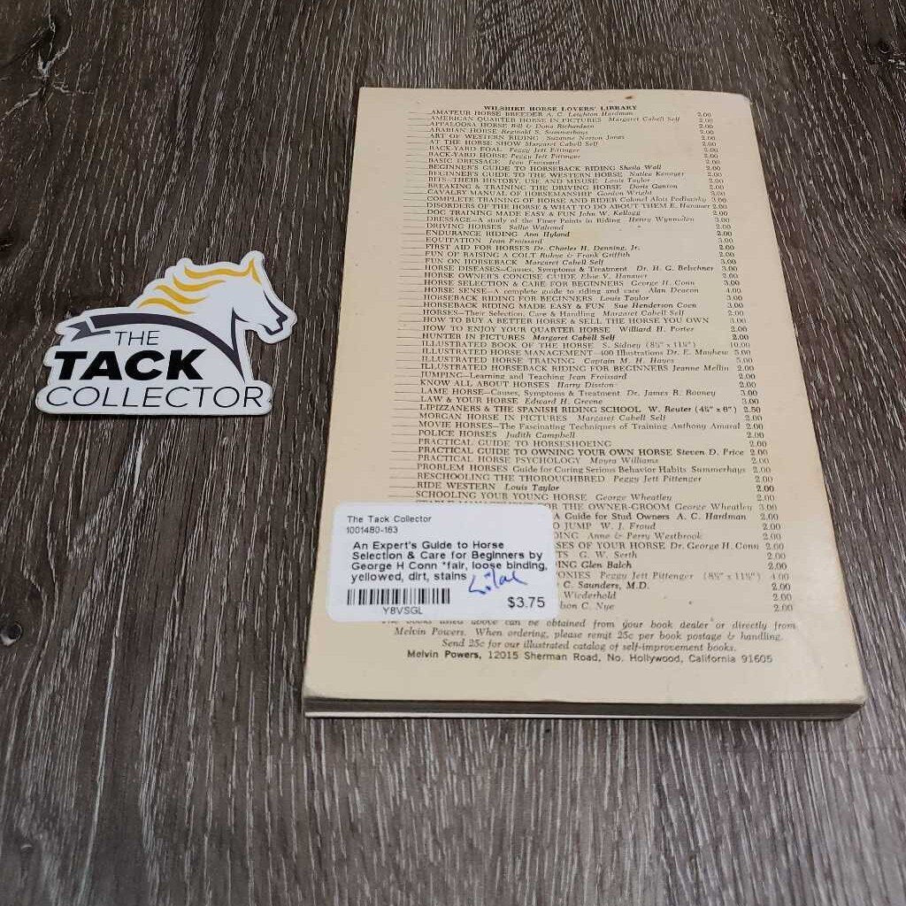An Expert's Guide to Horse Selection & Care for Beginners by George H Conn *fair, loose binding, yellowed, dirt, stains