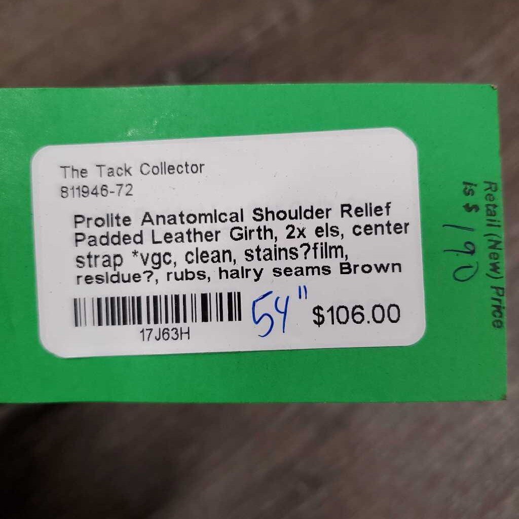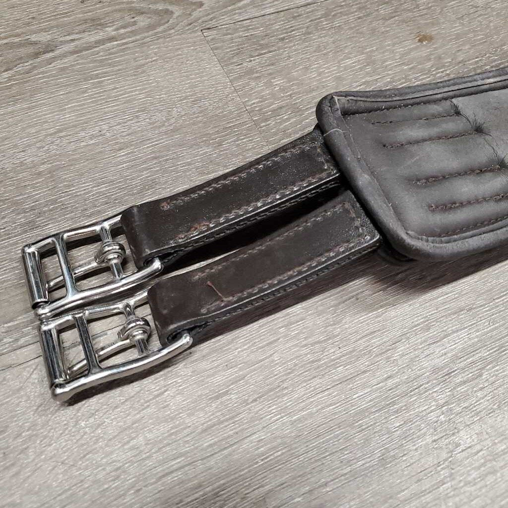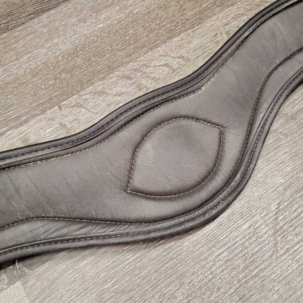 Anatomical Shoulder Relief Padded Leather Girth, 2x els, center strap *vgc, clean, stains?film, residue?, rubs, hairy seams