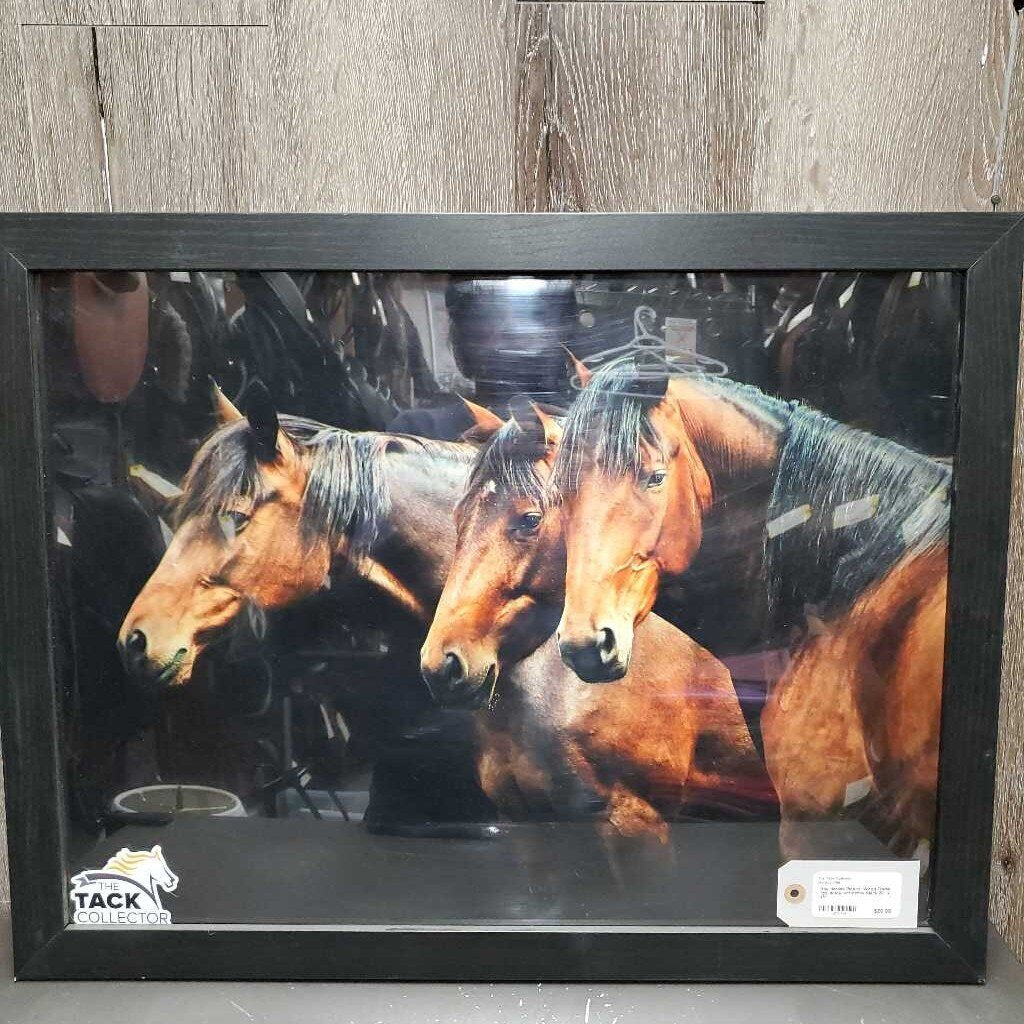 Bay Horses Picture, Wood Frame *gc, dusty, scratches