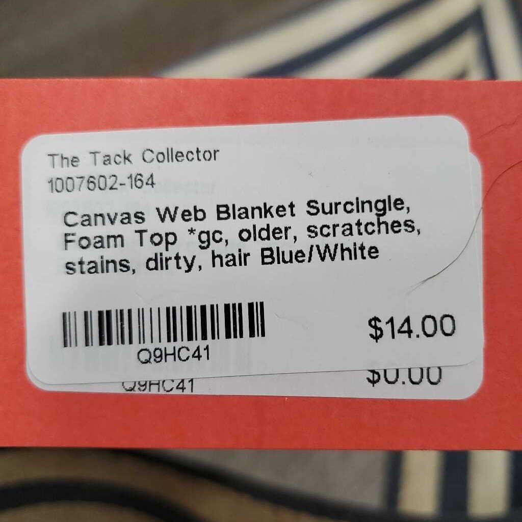 Canvas Web Blanket Surcingle, Foam Top *gc, older, scratches, stains, dirty, hair