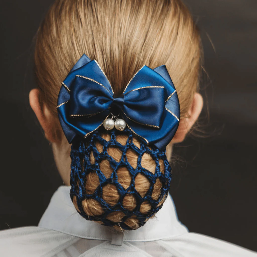 Faux Pearl Embellishments: Adorned with faux pearls, our bun cover adds a touch of elegance to your hairstyle. Flexible, Ultra-Stretchy Crochet Net: Constructed with a flexible elastic cord, our bun cover features an ultra-stretchy crochet net, effortlessly accommodating various hair lengths and thicknesses. Bid farewell to hair troubles and welcome flawless buns every time. Easy to Use: Engineered for simplicity, our bun cover smoothly slides into your hair, ensuring effortless styling without any hassle. Secure Clip Design: Designed with a sturdy clip, our bun cover remains securely in place throughout your ride, providing reliability and peace of mind. Velvet Storage Pouch: Each bun cover is accompanied by a plush velvet pouch, offering a luxurious and protective storage solution for your equestrian essentials.