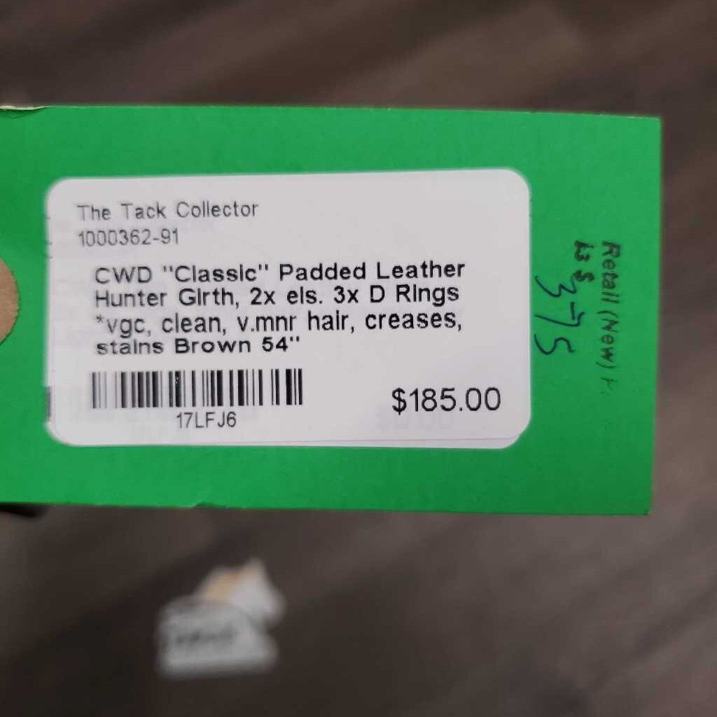 "Classic" Padded Leather Hunter Girth, 2x els. 3x D Rings *vgc, clean, v.mnr hair, creases, stains