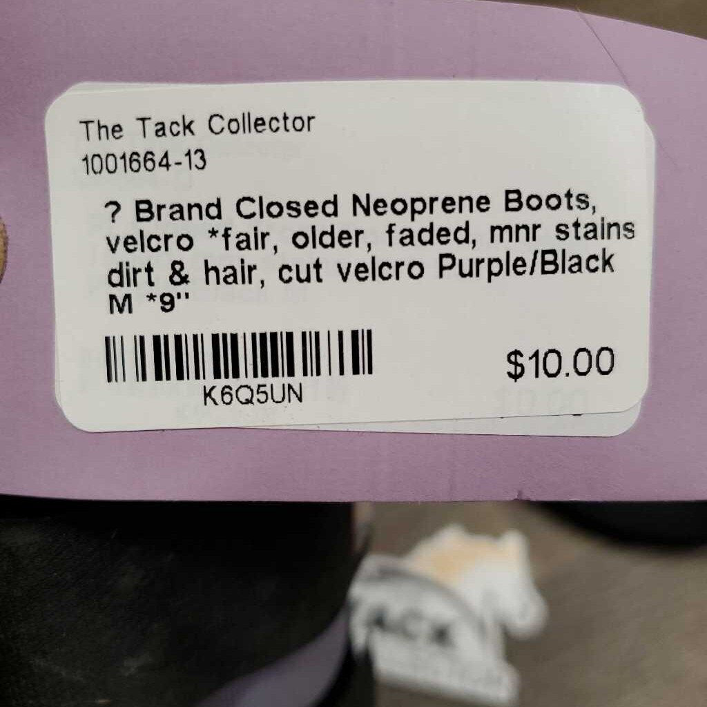 Closed Neoprene Boots, velcro *fair, older, faded, mnr stains, dirt & hair, cut velcro