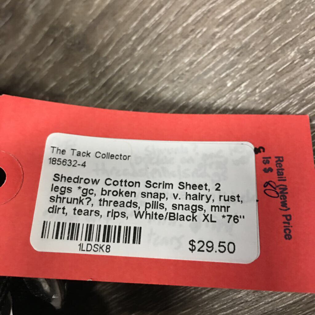 Cotton Scrim Sheet, 2 legs *gc, broken snap, v. hairy, rust, shrunk?, threads, pills, snags, mnr dirt, tears, rips SALE