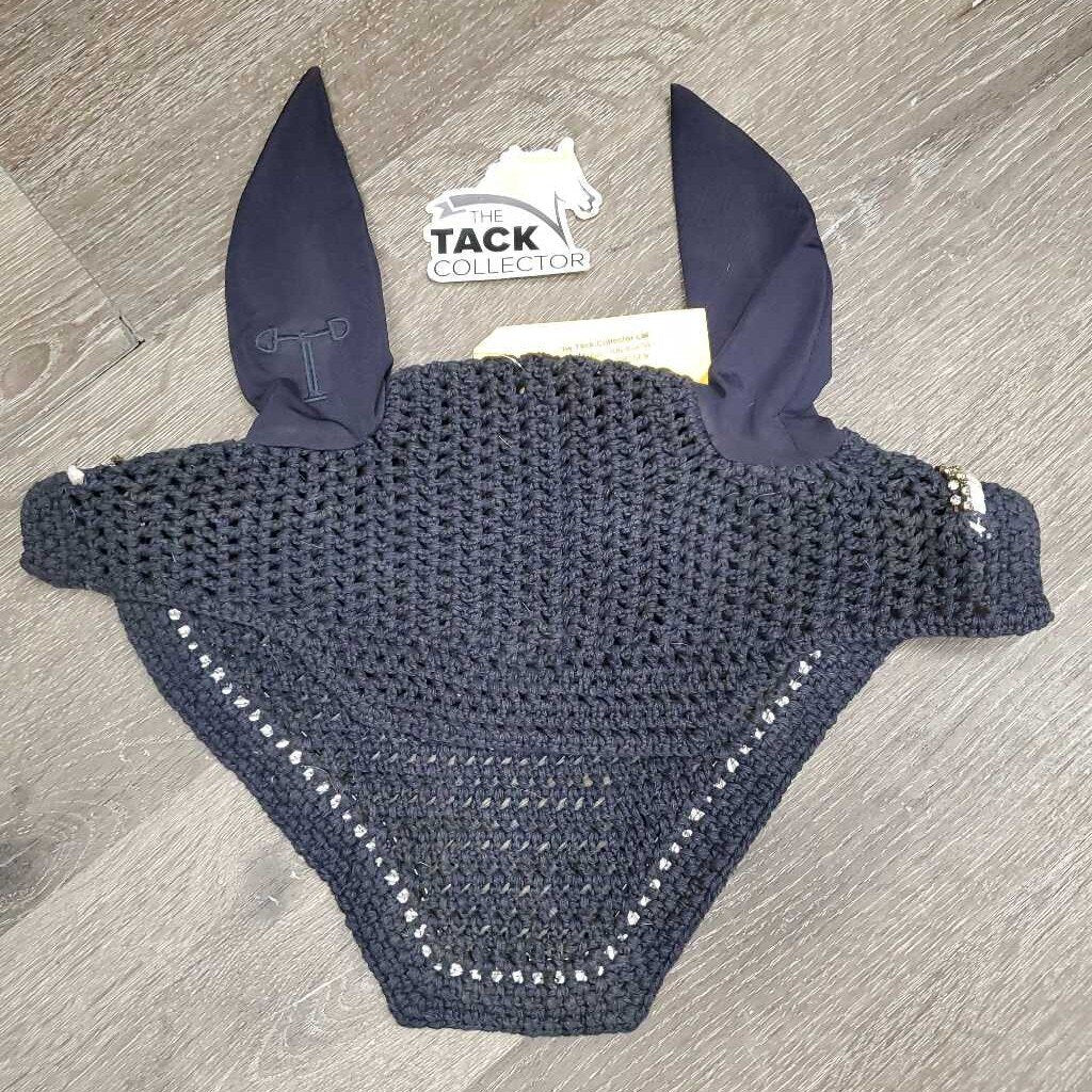 Crochet Ear Bonnet, 2x bling, 1x piping *vgc/gc, mnr hair, dirt, stains & faded