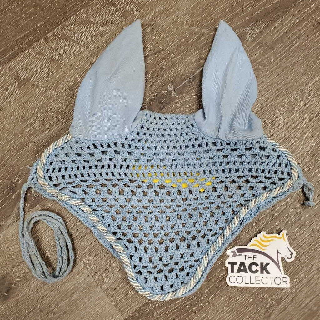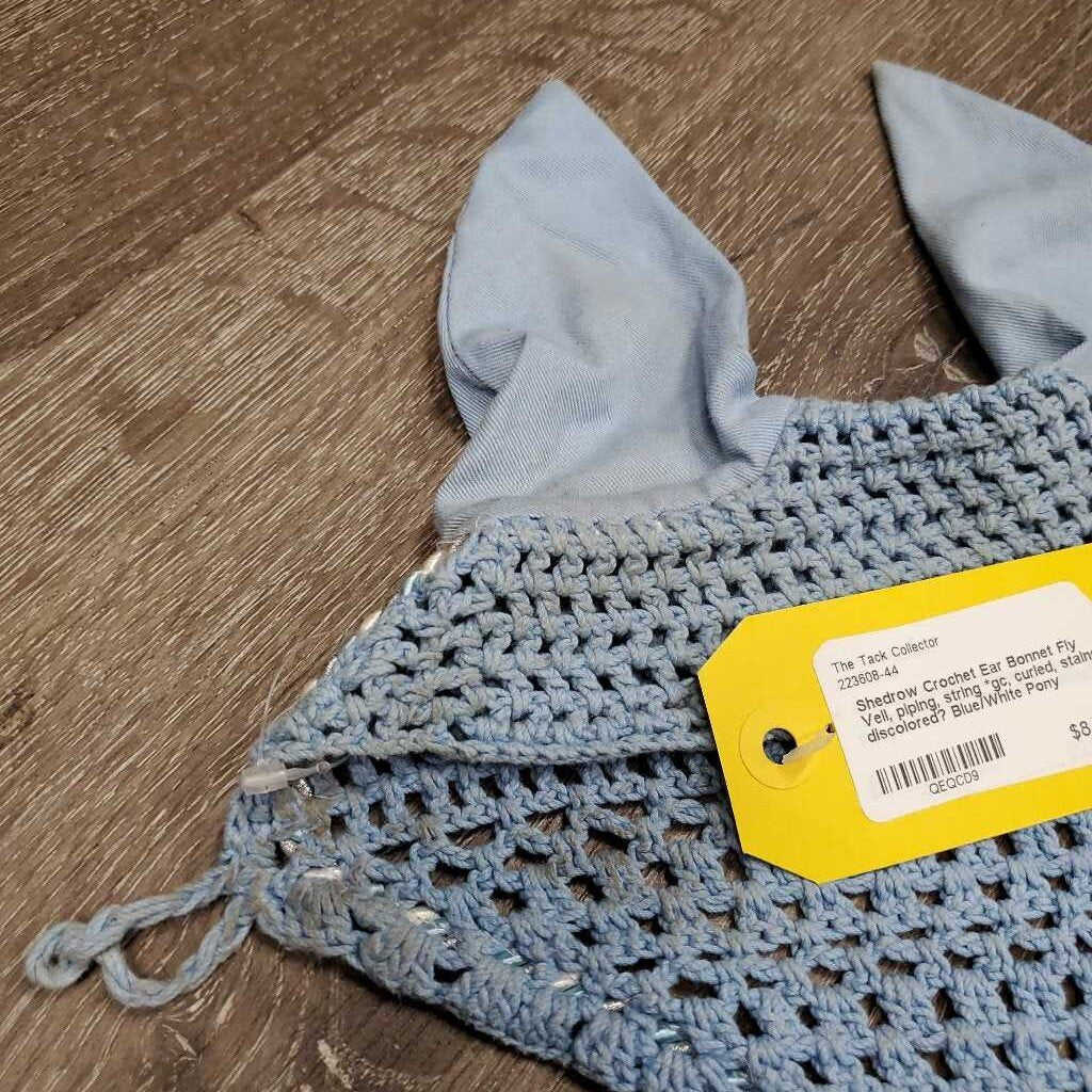 Crochet Ear Bonnet Fly Veil, piping, string *gc, curled, stains, discolored?