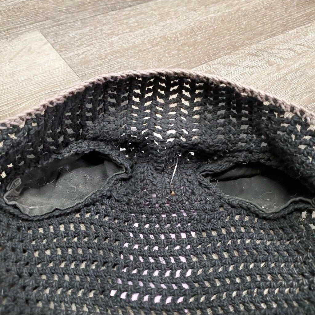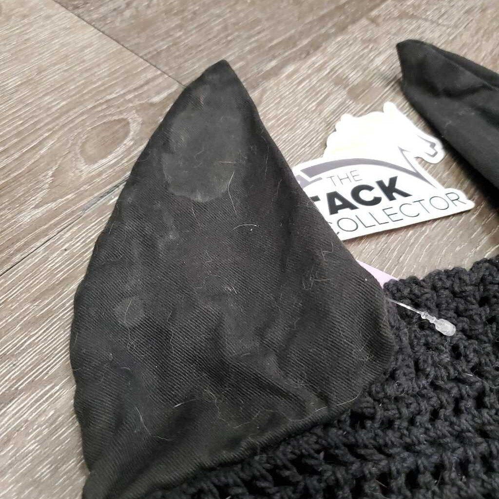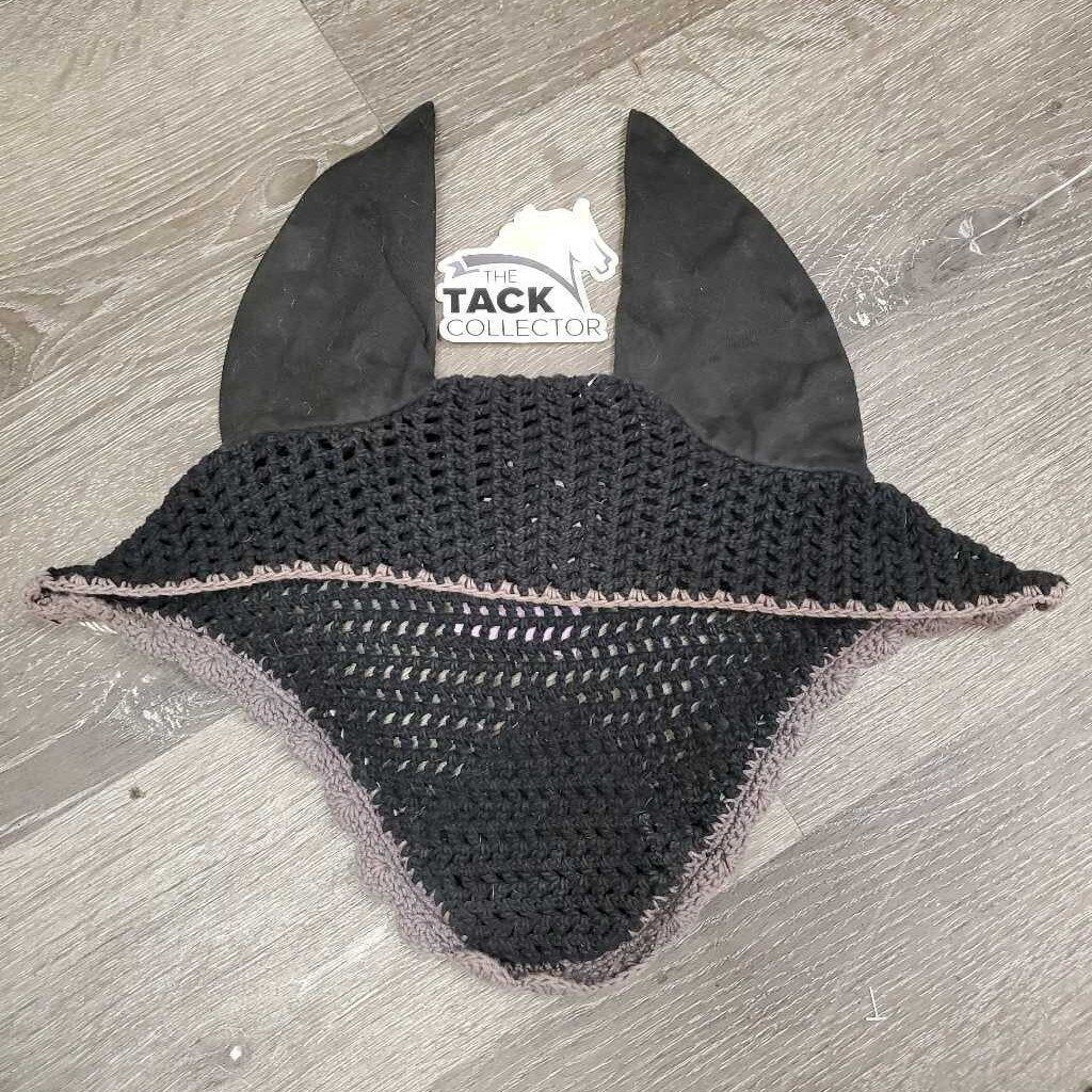 Crochet Ear Bonnet Fly Veil, x2 piping *gc/fair, faded, v.curled edges, hairy, discolored inside