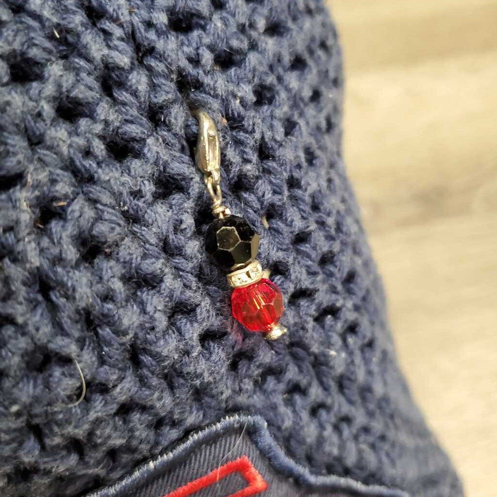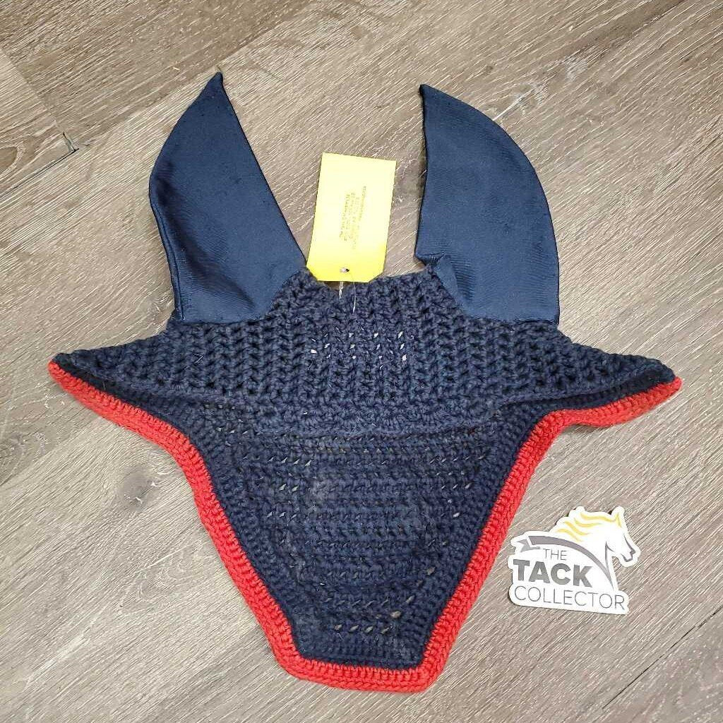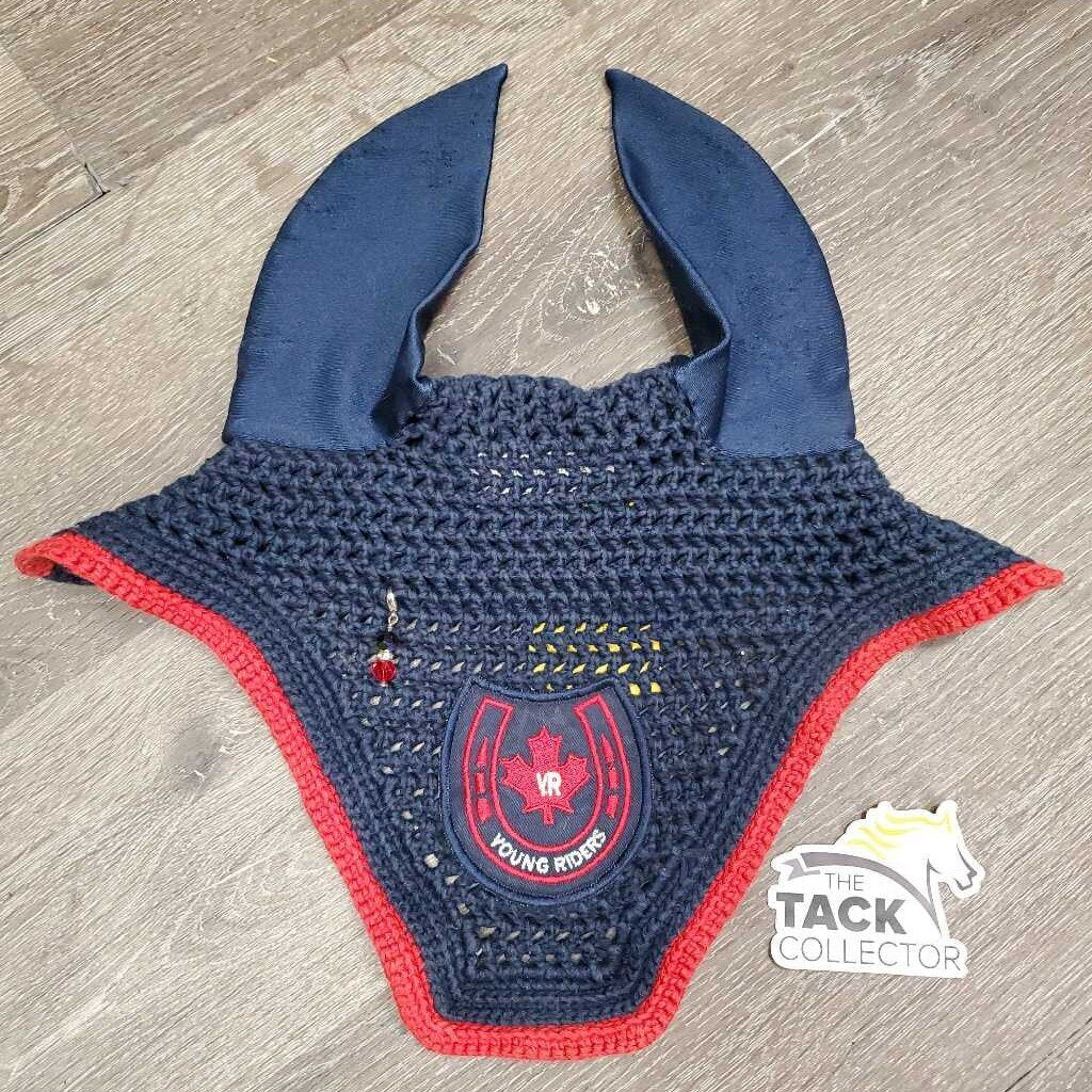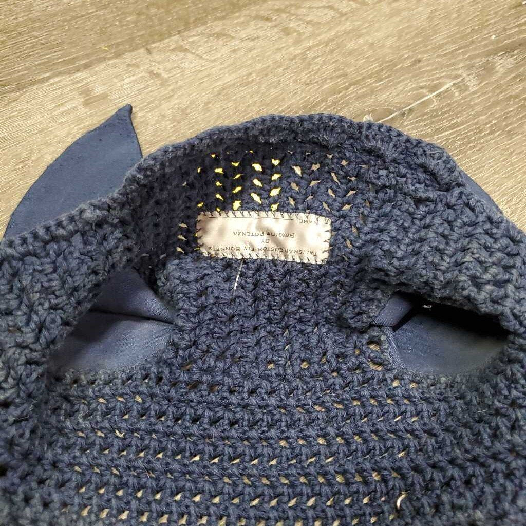 Crochet Fly Bonnet Ear Veil, Charm "Young Riders" *gc, clean, mnr hair, rubs, faded & stains, snags & pills