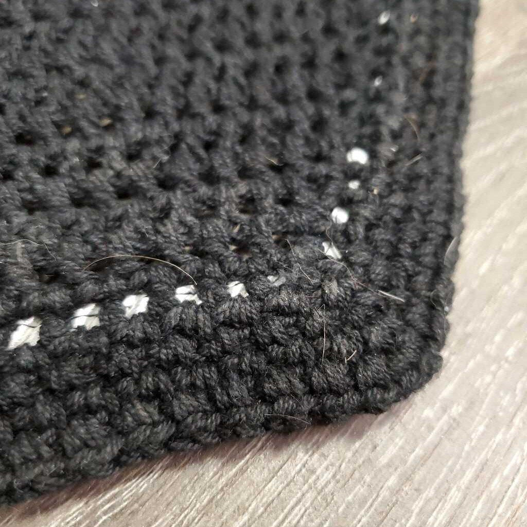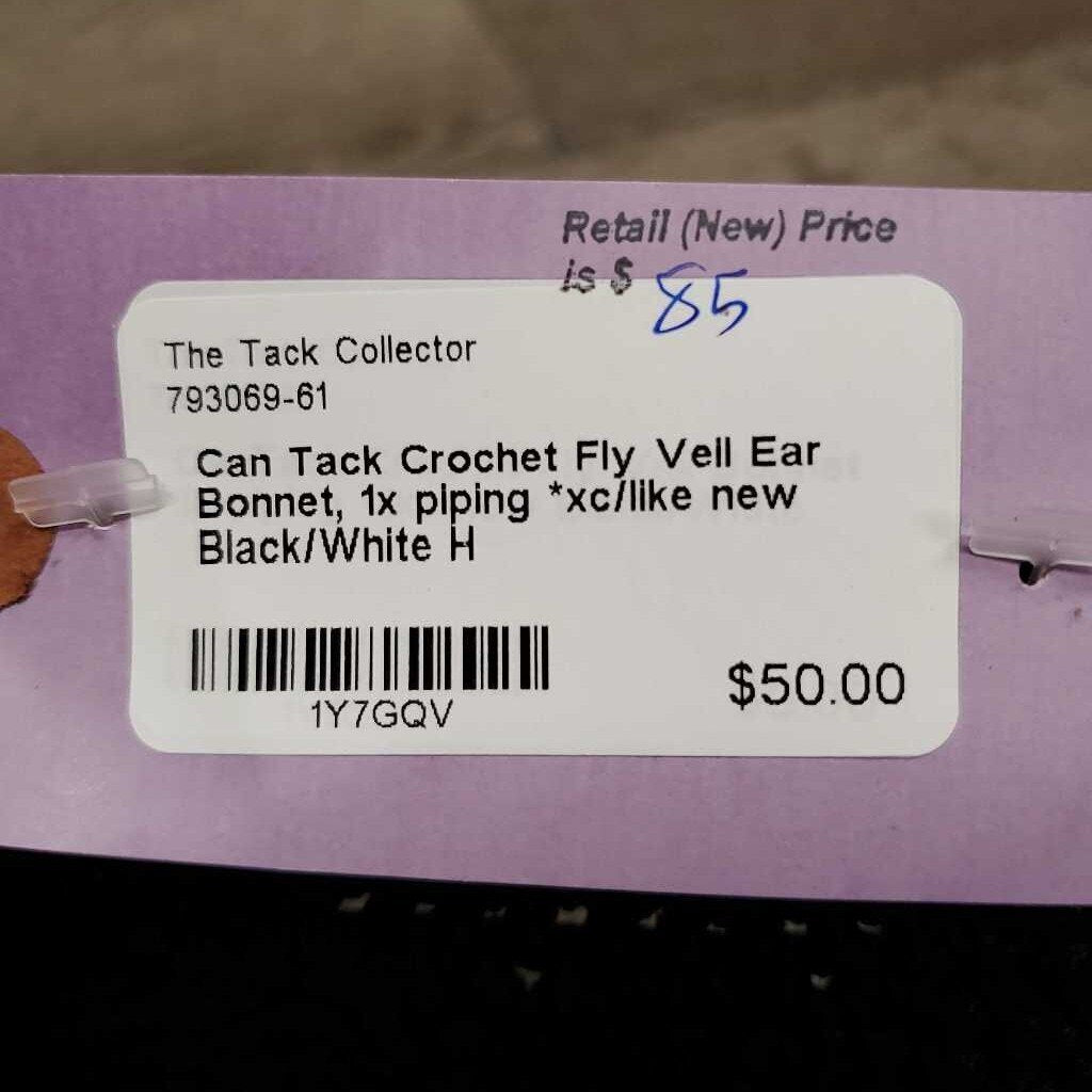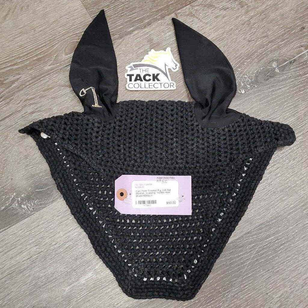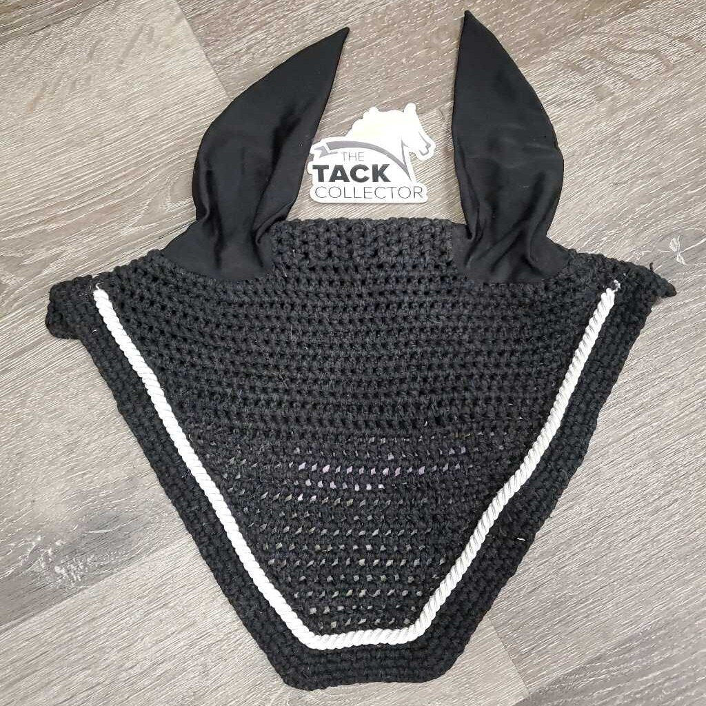 Crochet Fly Veil Ear Bonnet, 1x piping *xc/like new