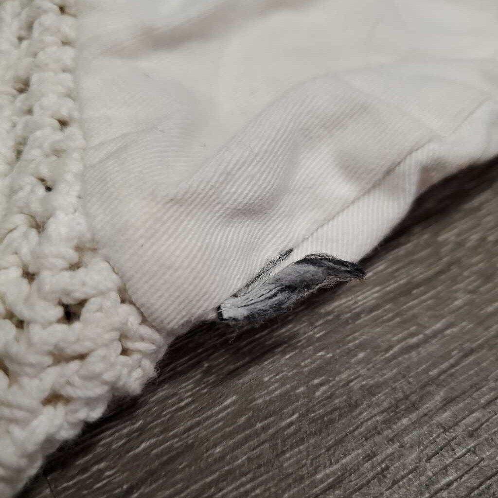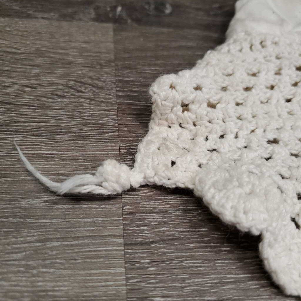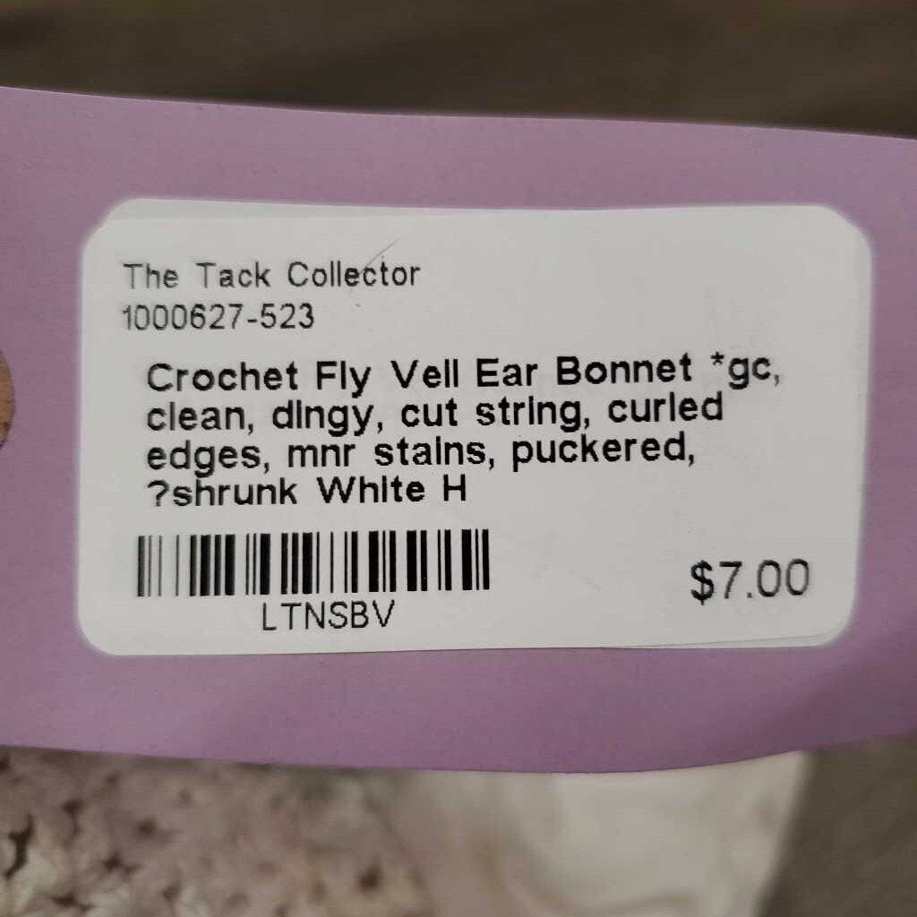 Crochet Fly Veil Ear Bonnet *gc, clean, dingy, cut string, curled edges, mnr stains, puckered, ?shrunk