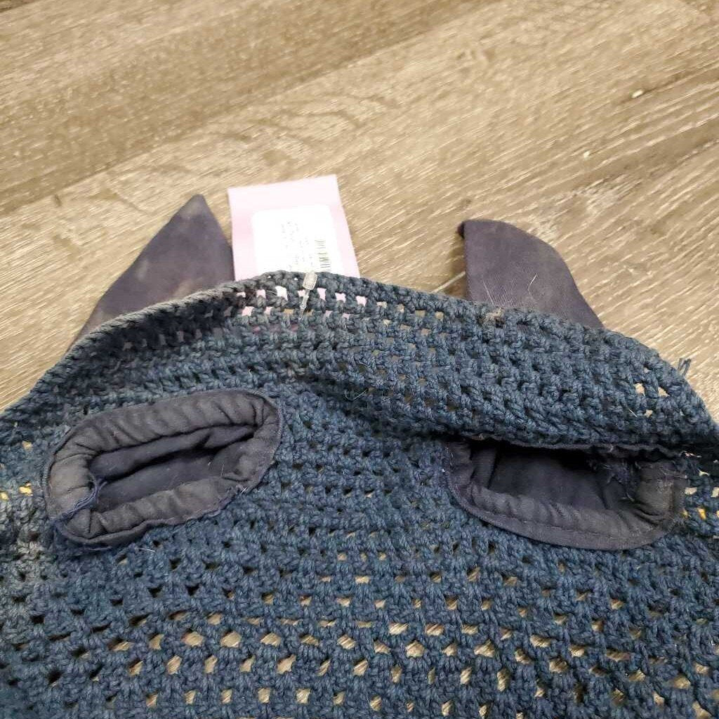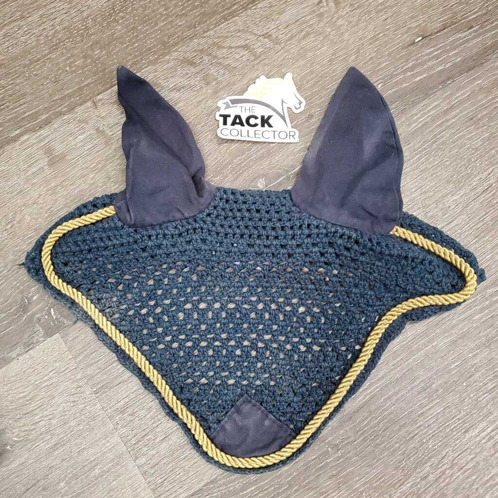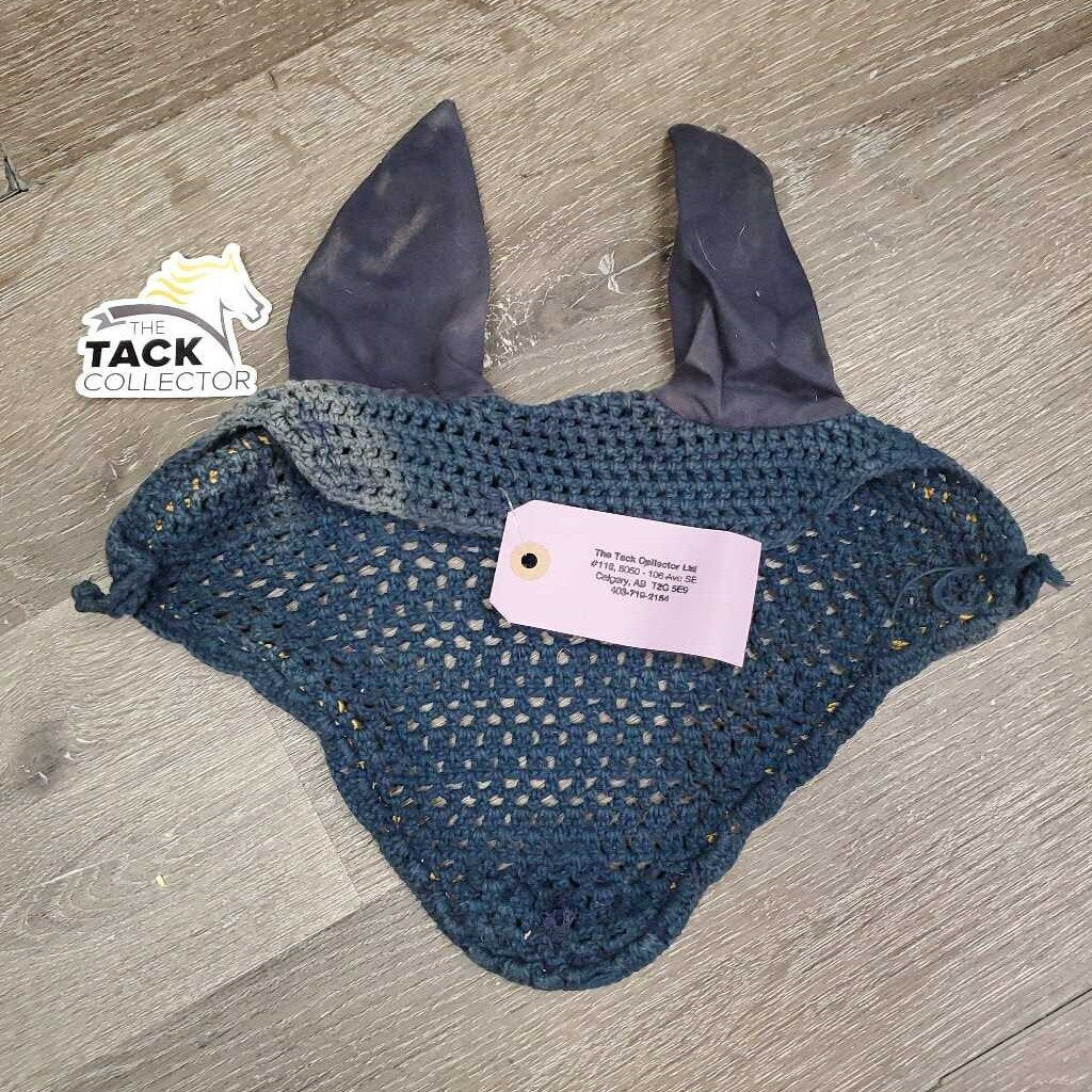 Crochet Fly Veil Ear Bonnet *gc, clean, dingy, cut string, curled edges, mnr stains, puckered, ?shrunk