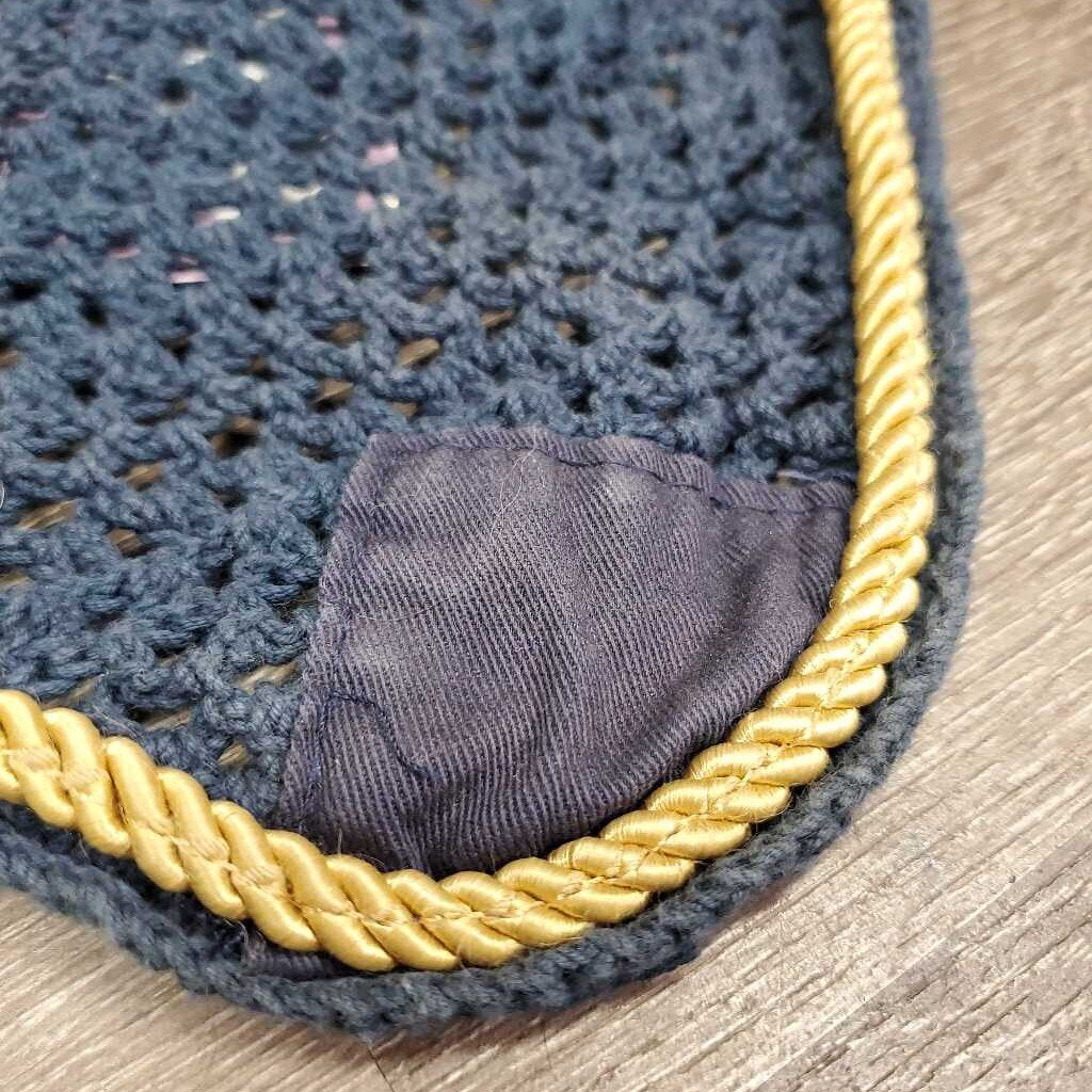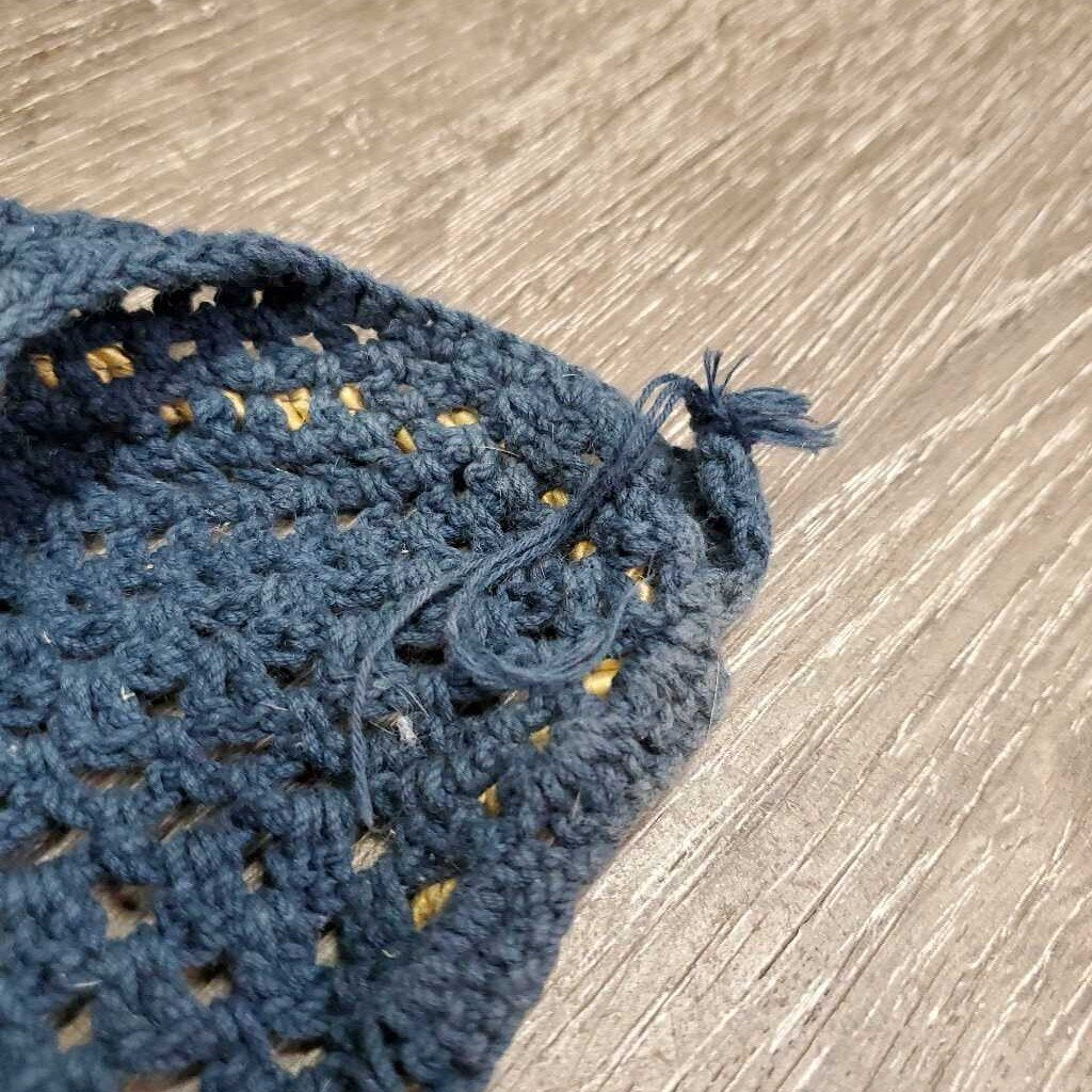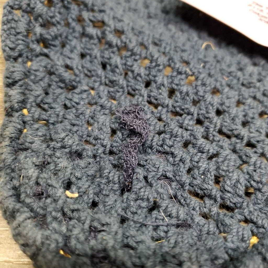Crochet Fly Veil Ear Bonnet *gc, clean, dingy, cut string, curled edges, mnr stains, puckered, ?shrunk