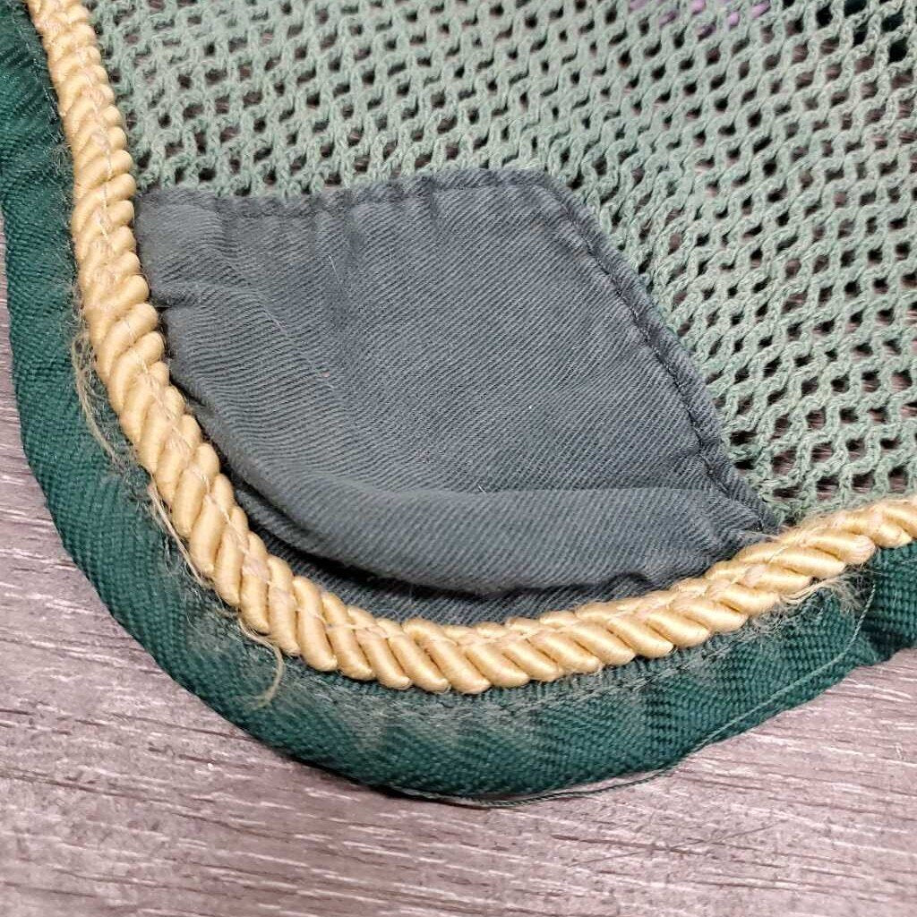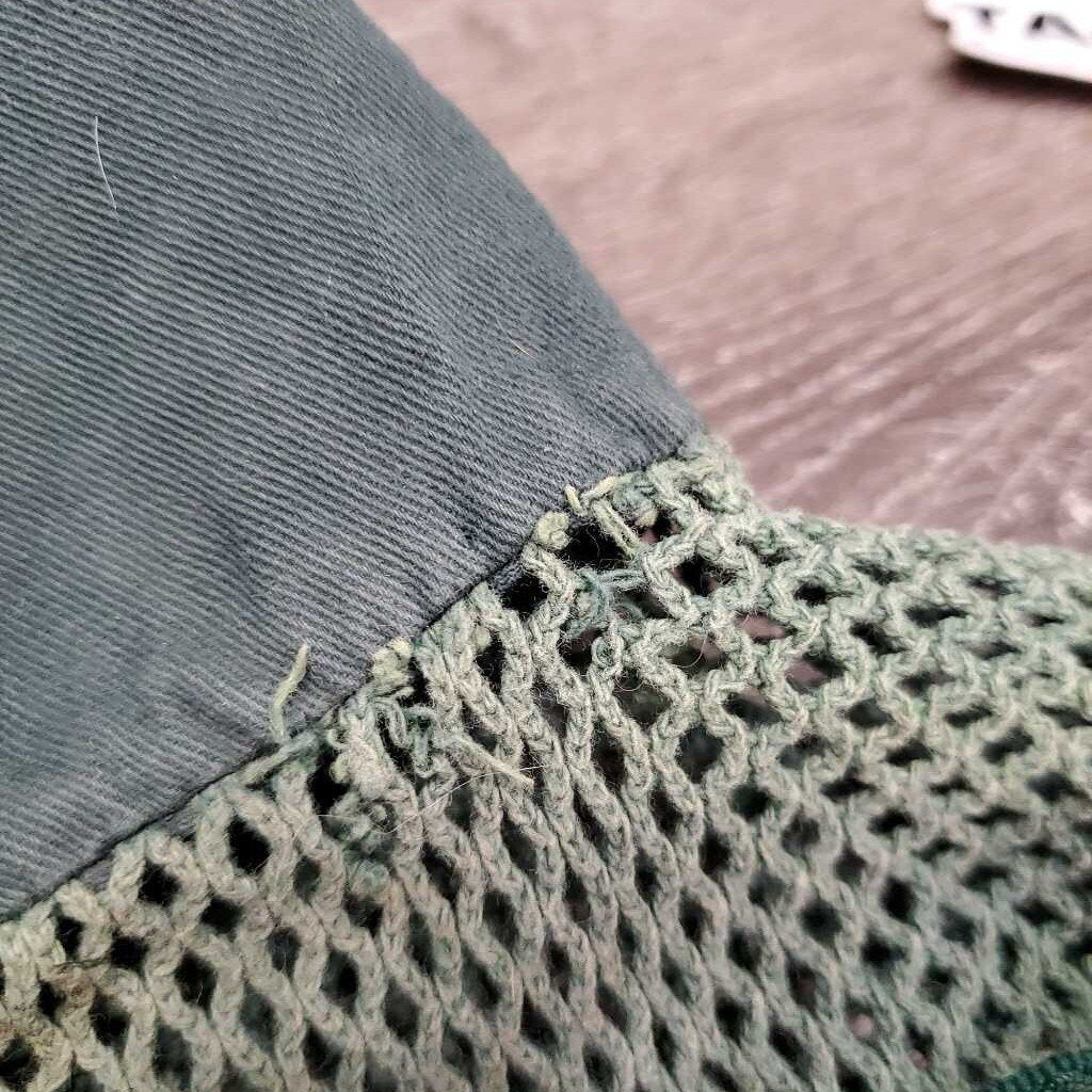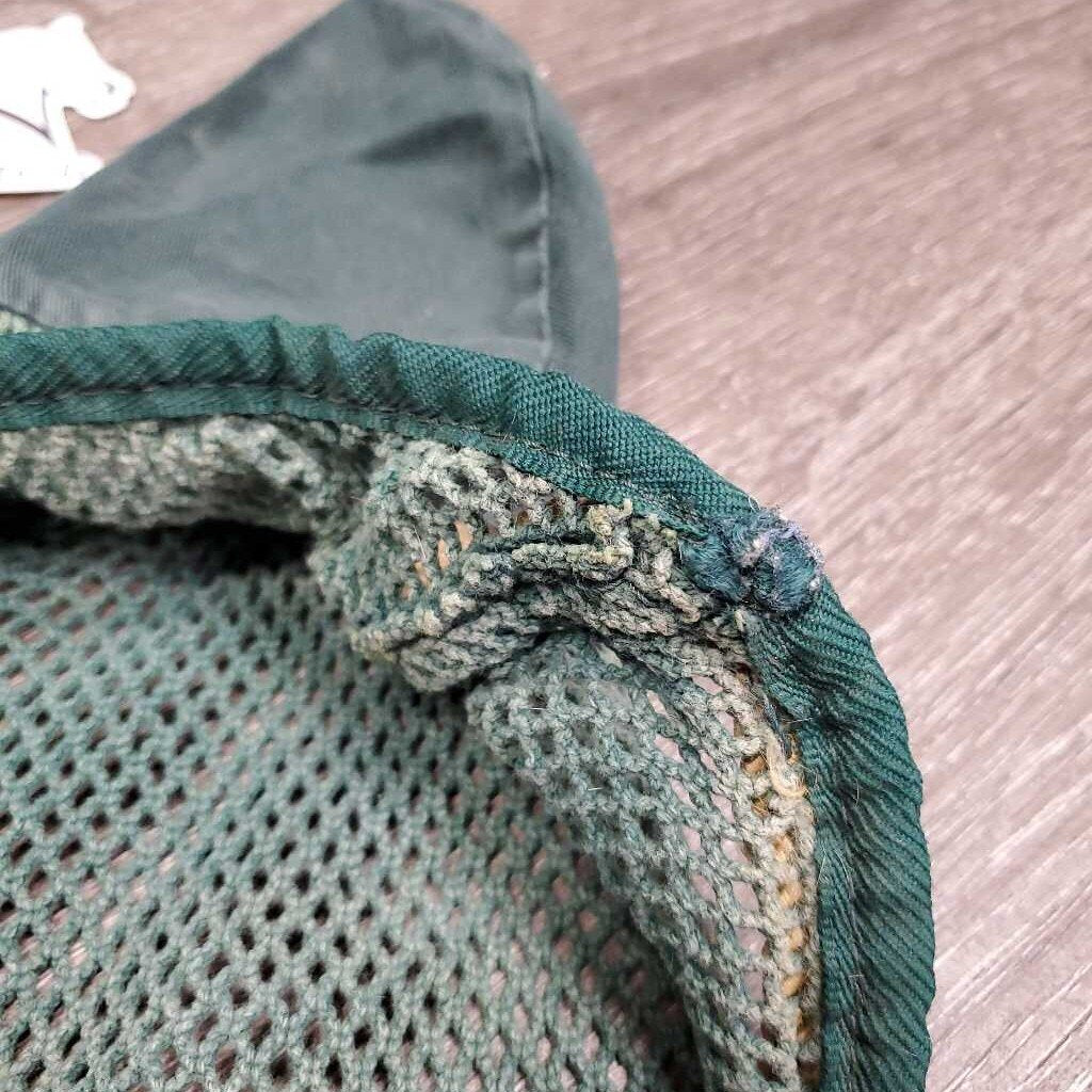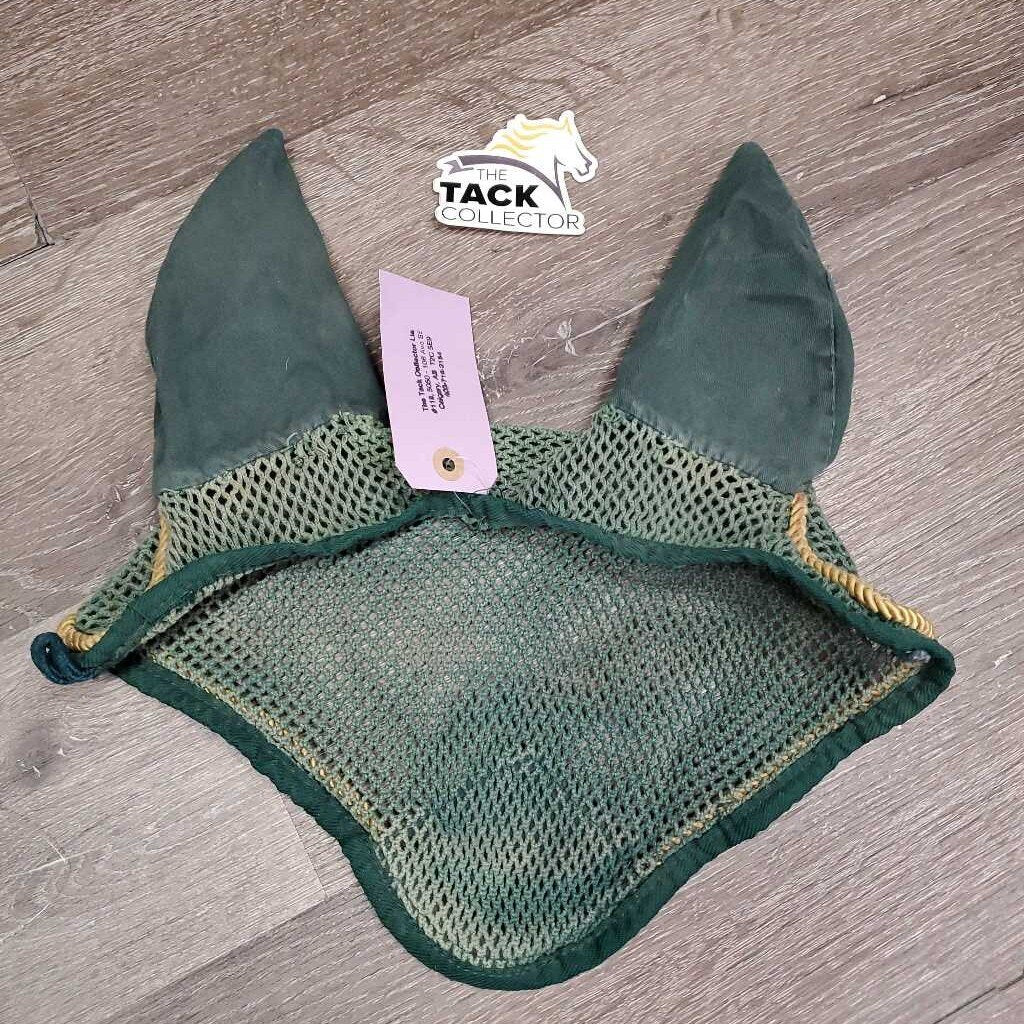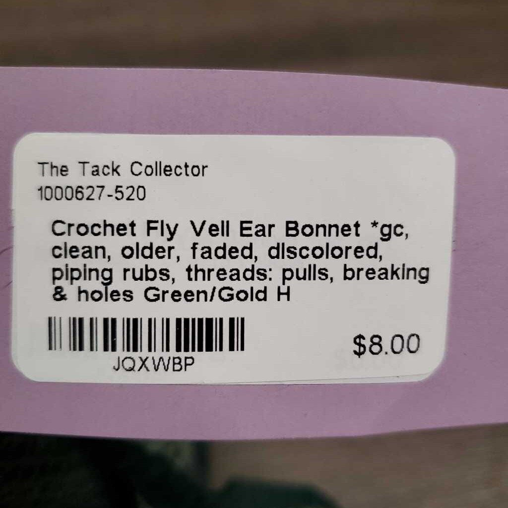 Crochet Fly Veil Ear Bonnet *gc, clean, older, faded, discolored, piping rubs, threads: pulls, breaking & holes