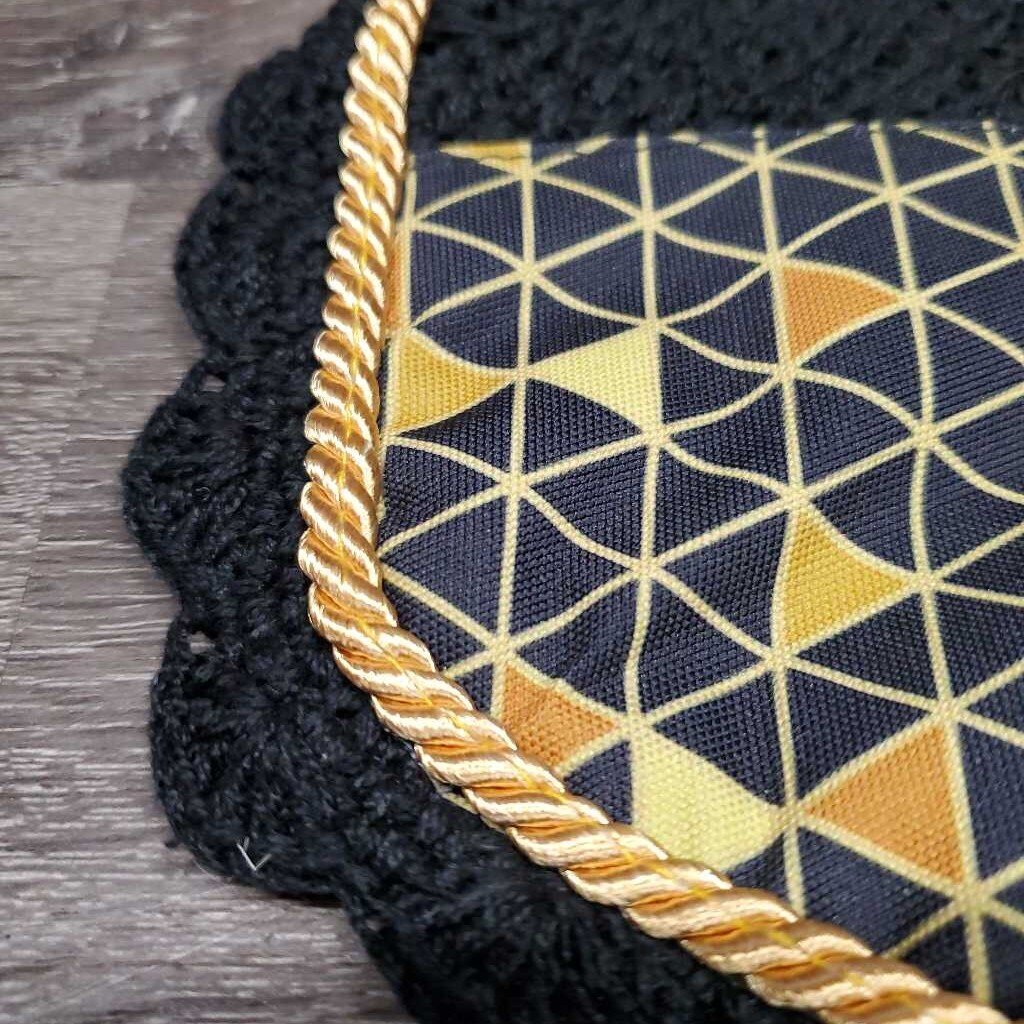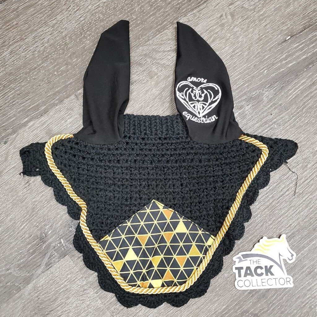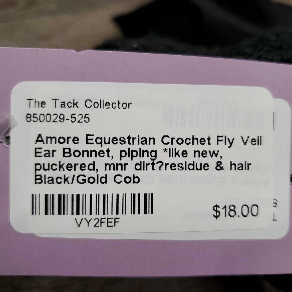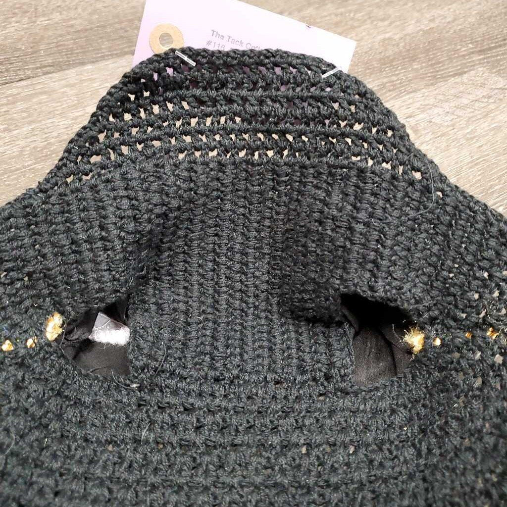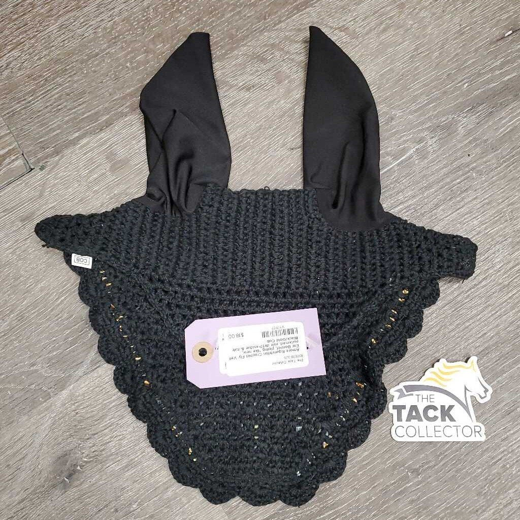 Crochet Fly Veil Ear Bonnet, piping *like new, puckered, mnr dirt?residue & hair