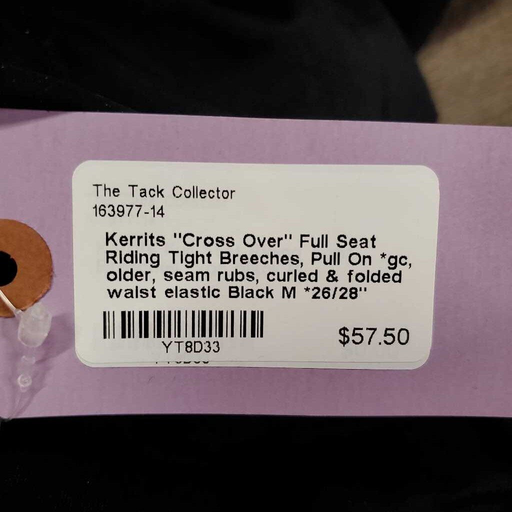 "Cross Over" Full Seat Riding Tight Breeches, Pull On *gc, older, seam rubs, curled & folded waist elastic