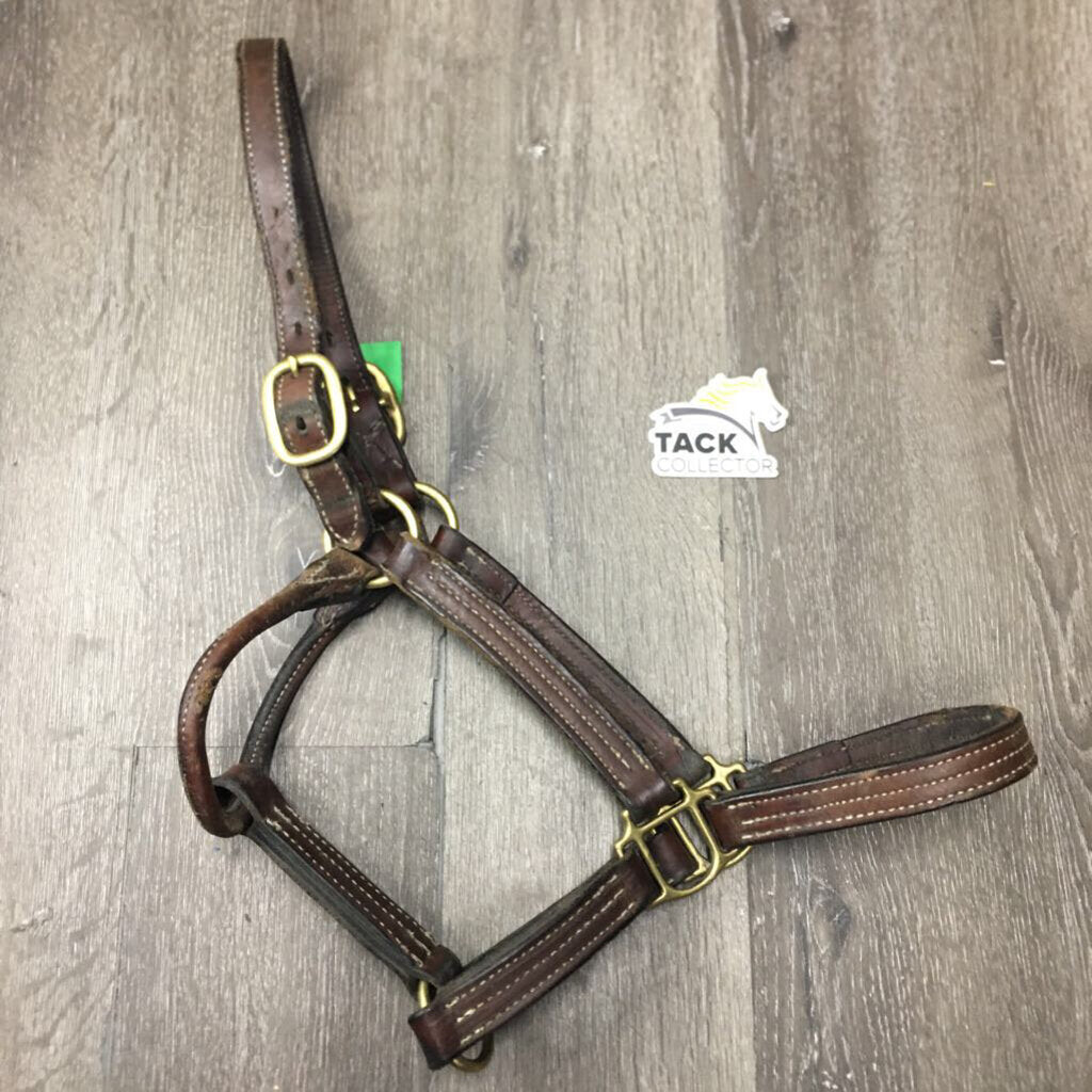 Double Stitched Soft Leather Halter *gc/fair, clean, scrapes, slices, chews, mnr dirt & stains, stitching rubs, older