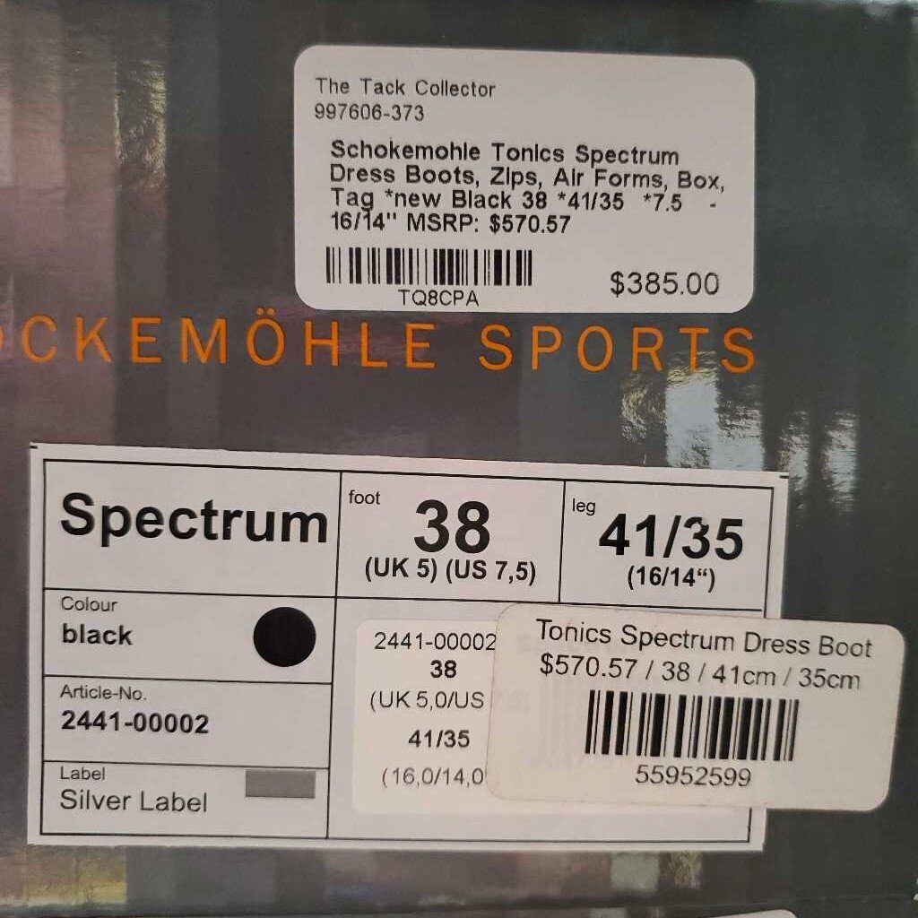 The Schockemohle Sports Tonics Spectrum Tall Boot seamlessly combines performance, comfort, and style. Expertly crafted for the discerning equestrian, these boots are made from high-quality materials that offer exceptional durability, flexibility, and a sleek, sophisticated appearance. Designed for a custom-like fit, the Tonics Spectrum boots feature a modern, stylish silhouette, while elegant details like a durable zipper and subtle logo embellishments complete their refined look. Features: High-quality materials for durability and flexibility Durable leather exterior Soft calfskin lining for comfort during long rides Grippy leather on inner calf Sleek, modern design for a polished look Durable YKK rear zipper for easy wear and removal Tasteful logo embellishments for added style Zipper protector with spur holder Subtle cushioning around ankle Abrasion protection for long-lasting wear