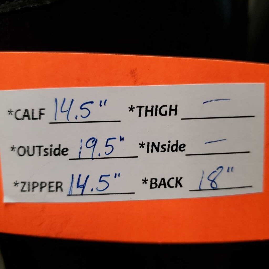 Calf 14.5", Outside 19.5", Zipper 14.5", Back 18"