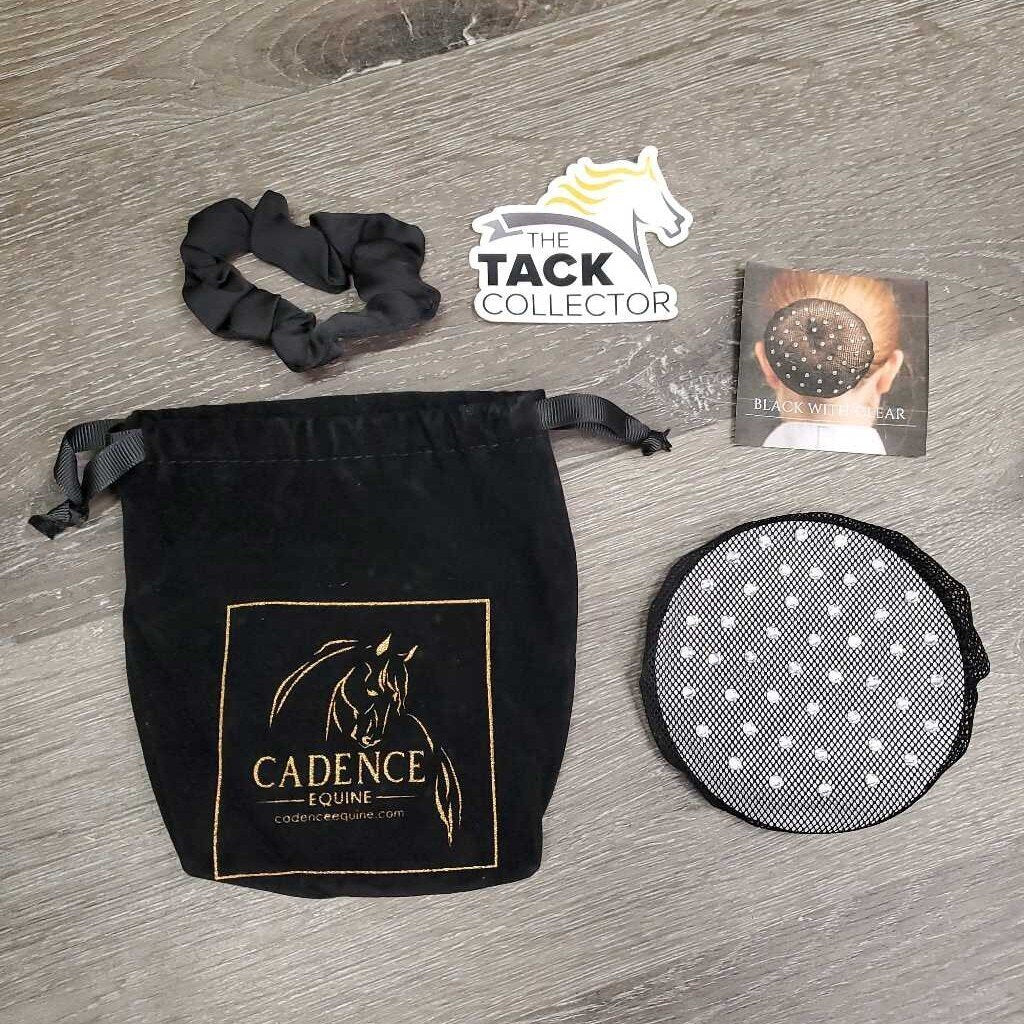 Our latest hair accessories addition: the Elasticized Bun Cover. Designed for riders who seek both elegance and functionality, these bun covers are the perfect finishing touch for your show or clinic outfit. Stunning Glass Stones: Adorned with dazzling glass stones, our bun covers add a touch of sparkle and sophistication to your hairstyle. Strong and Durable Elastic: Crafted with strong and durable elastic, our bun covers are suitable for all lengths of hair, providing a secure hold without compromising on comfort. Easy to Use: Simply pull the net over your bun and you're ready to go! Our bun covers are designed for convenience, allowing you to achieve a polished look with minimal effort. Versatile Pairing: Pair our bun covers with one of our scrunchies to elevate your ensemble even further, creating a cohesive and stylish look that stands out in the arena. Plush Velvet Pouch: Safely store your hair accessories in our luxurious velvet pouch, keeping them dust-free and organize...