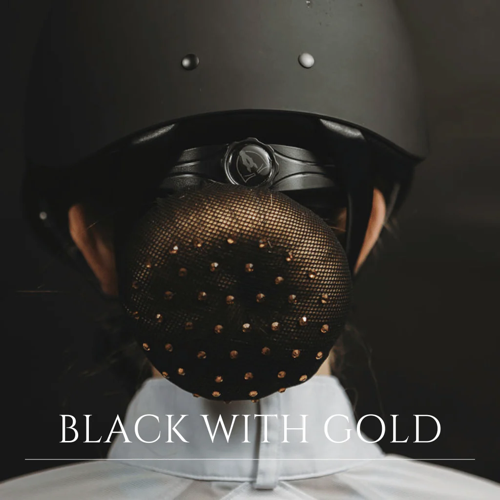 Our latest hair accessories addition: the Elasticized Bun Cover. Designed for riders who seek both elegance and functionality, these bun covers are the perfect finishing touch for your show or clinic outfit. Stunning Glass Stones: Adorned with dazzling glass stones, our bun covers add a touch of sparkle and sophistication to your hairstyle. Strong and Durable Elastic: Crafted with strong and durable elastic, our bun covers are suitable for all lengths of hair, providing a secure hold without compromising on comfort. Easy to Use: Simply pull the net over your bun and you're ready to go! Our bun covers are designed for convenience, allowing you to achieve a polished look with minimal effort. Versatile Pairing: Pair our bun covers with one of our scrunchies to elevate your ensemble even further, creating a cohesive and stylish look that stands out in the arena. Plush Velvet Pouch: Safely store your hair accessories in our luxurious velvet pouch, keeping them dust-free and organize...