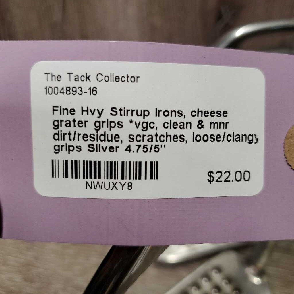 Fine Hvy Stirrup Irons, cheese grater grips *vgc, clean & mnr dirt/residue, scratches, loose/clangy grips