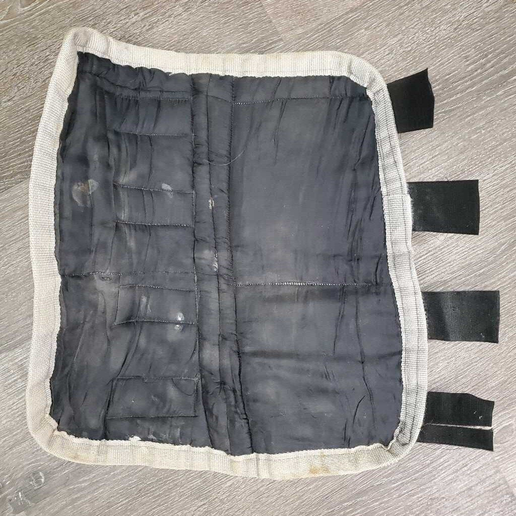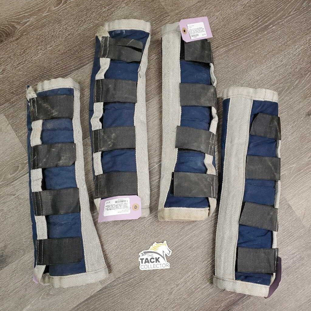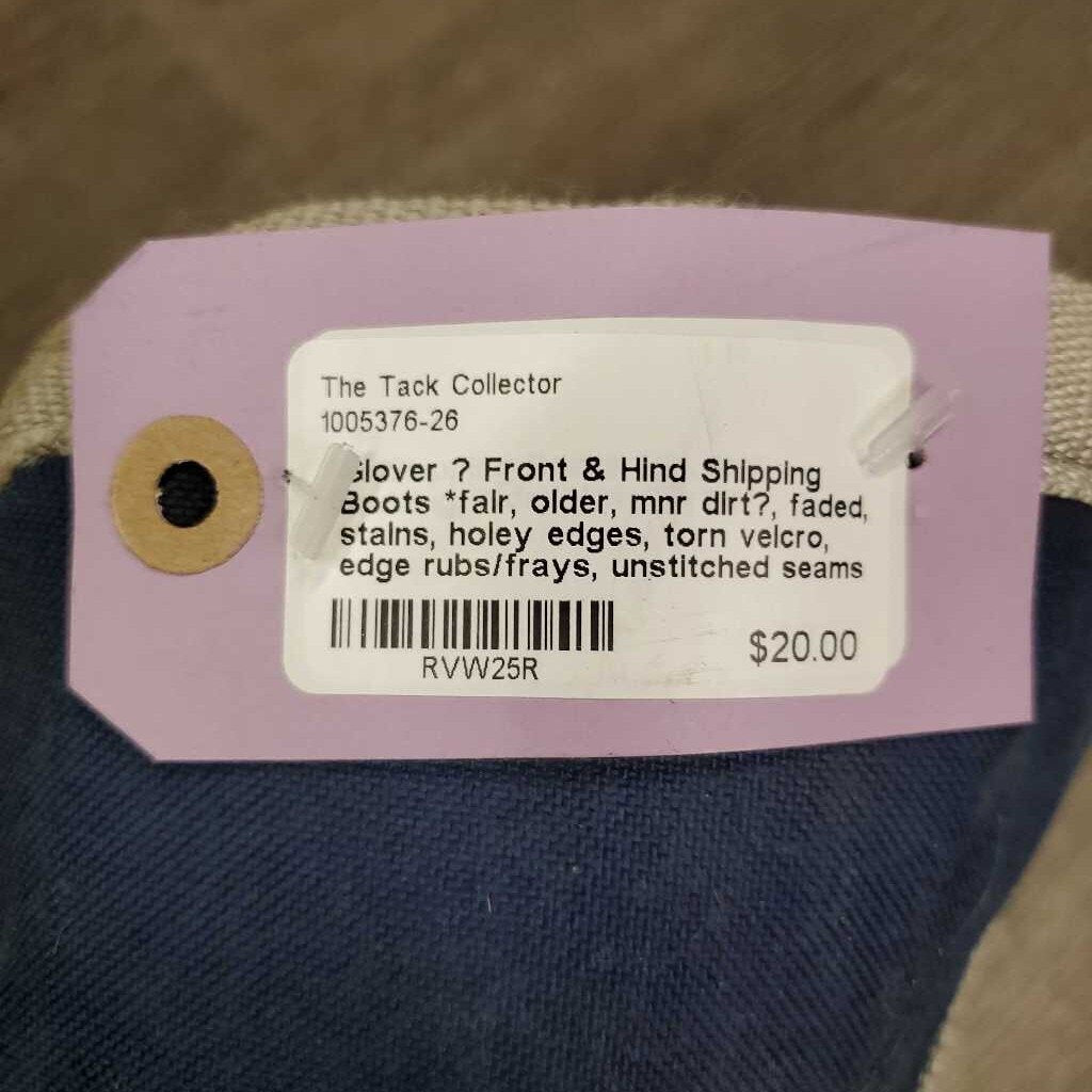 Front & Hind Shipping Boots *fair, older, mnr dirt?, faded, stains, holey edges, torn velcro, edge rubs/frays, unstitched seams